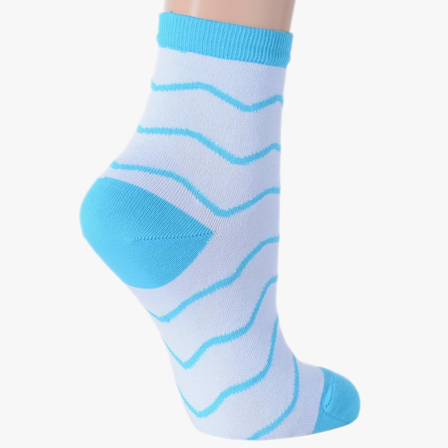 Круглогодичные укороченные женские носки, цвет голубой, классические, шов обычный (не бесшовные), принт (рисунок): полоски, с узором, состав: 85% хлопок, 10% полиамид, 5% эластан (лайкра), арт. Д115. Производитель «ИП Мурзаков В.А., Ставропольский край, Россия» под брендом «Lorenzline».
