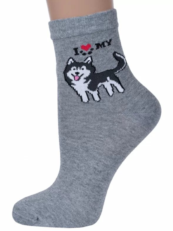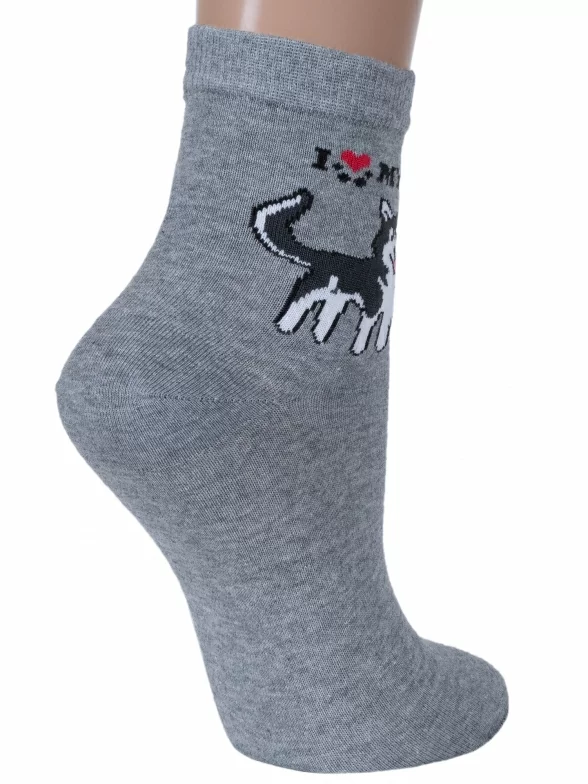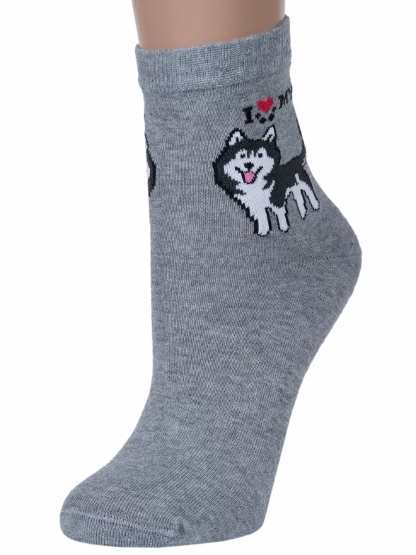 Круглогодичные укороченные женские носки, цвет серый, повседневные, шов обычный (не бесшовные), принт (рисунок): животные, с узором, крупные контрастные рисунки, состав: 85% хлопок, 10% полиамид, 5% эластан (лайкра), арт. Д117. Производитель «ИП Мурзаков В.А., Ставропольский край, Россия» под брендом «Lorenzline».