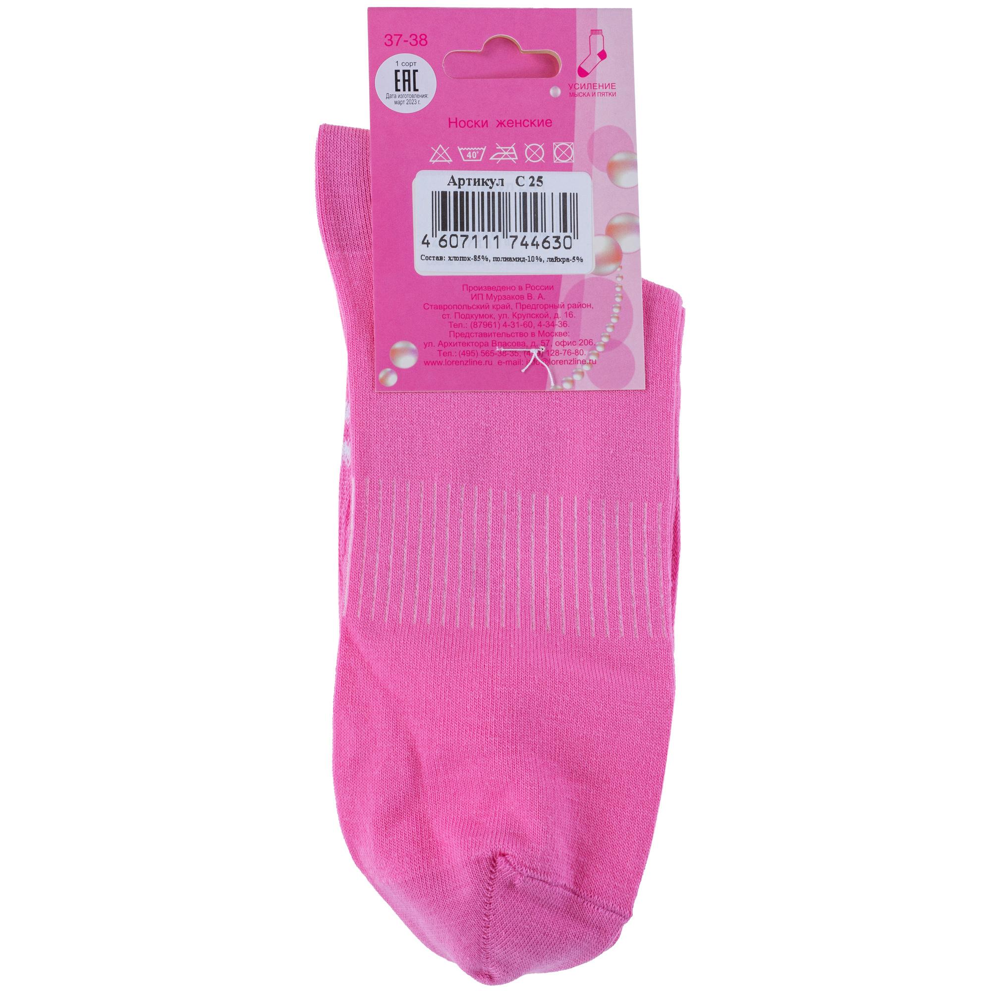 Круглогодичные укороченные женские носки, цвет розовый, спортивные, шов обычный (не бесшовные), принт (рисунок): спортивные, с узором, состав: 85% хлопок, 10% полиамид, 5% эластан (лайкра), арт. С25. Производитель «ИП Мурзаков В.А., Ставропольский край, Россия» под брендом «Lorenzline».