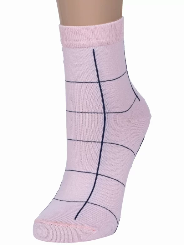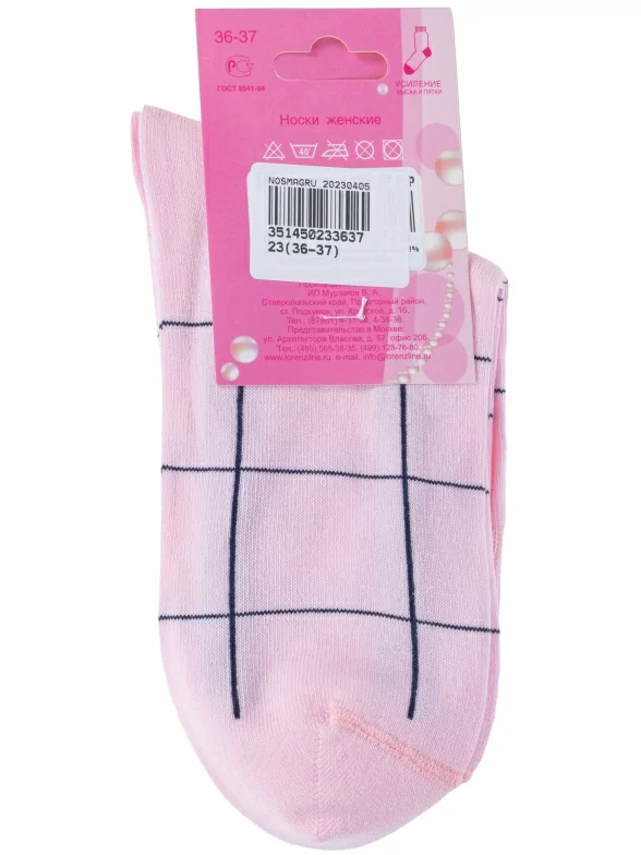 Круглогодичные укороченные женские носки, цвет розовый, повседневные, шов обычный (не бесшовные), принт (рисунок): клетка, с узором, состав: 85% хлопок, 10% полиамид, 5% эластан (лайкра), арт. Д128. Производитель «ИП Мурзаков В.А., Ставропольский край, Россия» под брендом «Lorenzline».