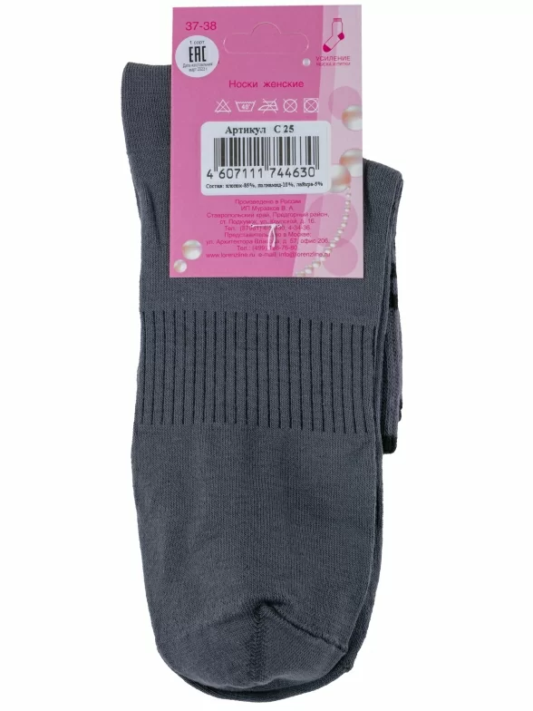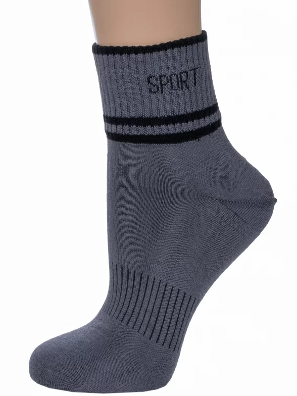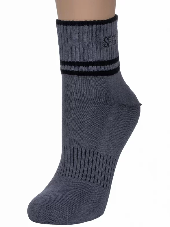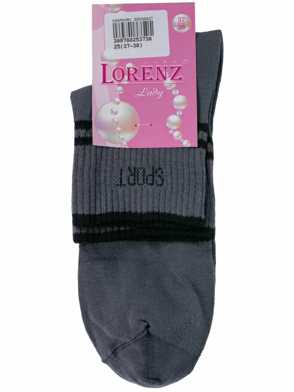 Круглогодичные укороченные женские носки, цвет серый, спортивные, шов обычный (не бесшовные), принт (рисунок): спортивные, с узором, состав: 85% хлопок, 10% полиамид, 5% эластан (лайкра), арт. С25. Производитель «ИП Мурзаков В.А., Ставропольский край, Россия» под брендом «Lorenzline».