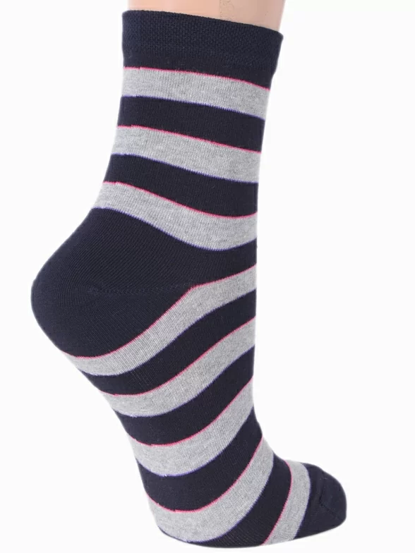 Круглогодичные средней длины женские носки, цвет темно-синий, классические, шов обычный (не бесшовные), принт (рисунок): полоски, с узором, состав: 85% хлопок, 10% полиамид, 5% эластан (лайкра), арт. Д119. Производитель «ИП Мурзаков В.А., Ставропольский край, Россия» под брендом «Lorenzline».