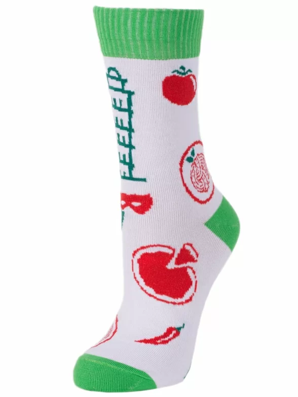 Круглогодичные средней длины женские носки, цвет белый-многоцветные (мультиколор), повседневные, шов обычный (не бесшовные), принт (рисунок): с узором, архитектура, еда и напитки, путешествия, состав: 82% хлопок, 15% полиамид, 3% эластан, арт. WNM-53. Производитель «ИП Рыбалкин В.С., Московская область, г. Щелково» под брендом «Msclub».