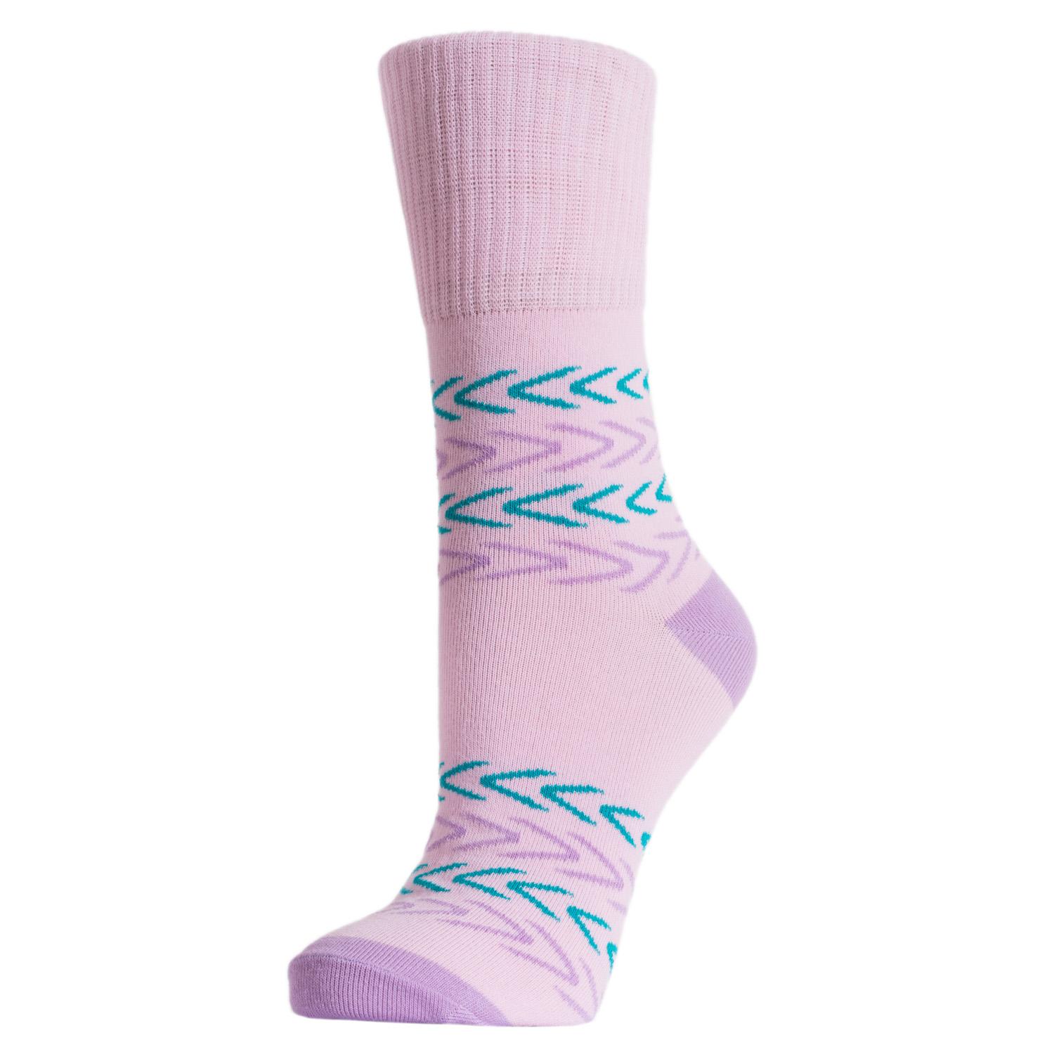 Круглогодичные средней длины женские носки, цвет многоцветные (мультиколор)-розовый, классические, повседневные, шов обычный (не бесшовные), принт (рисунок): с узором, абстрактный, геометрия, состав: 82% хлопок, 15% полиамид, 3% эластан, арт. WNM-38. Производитель «ИП Рыбалкин В.С., Московская область, г. Щелково» под брендом «Msclub».