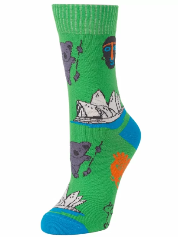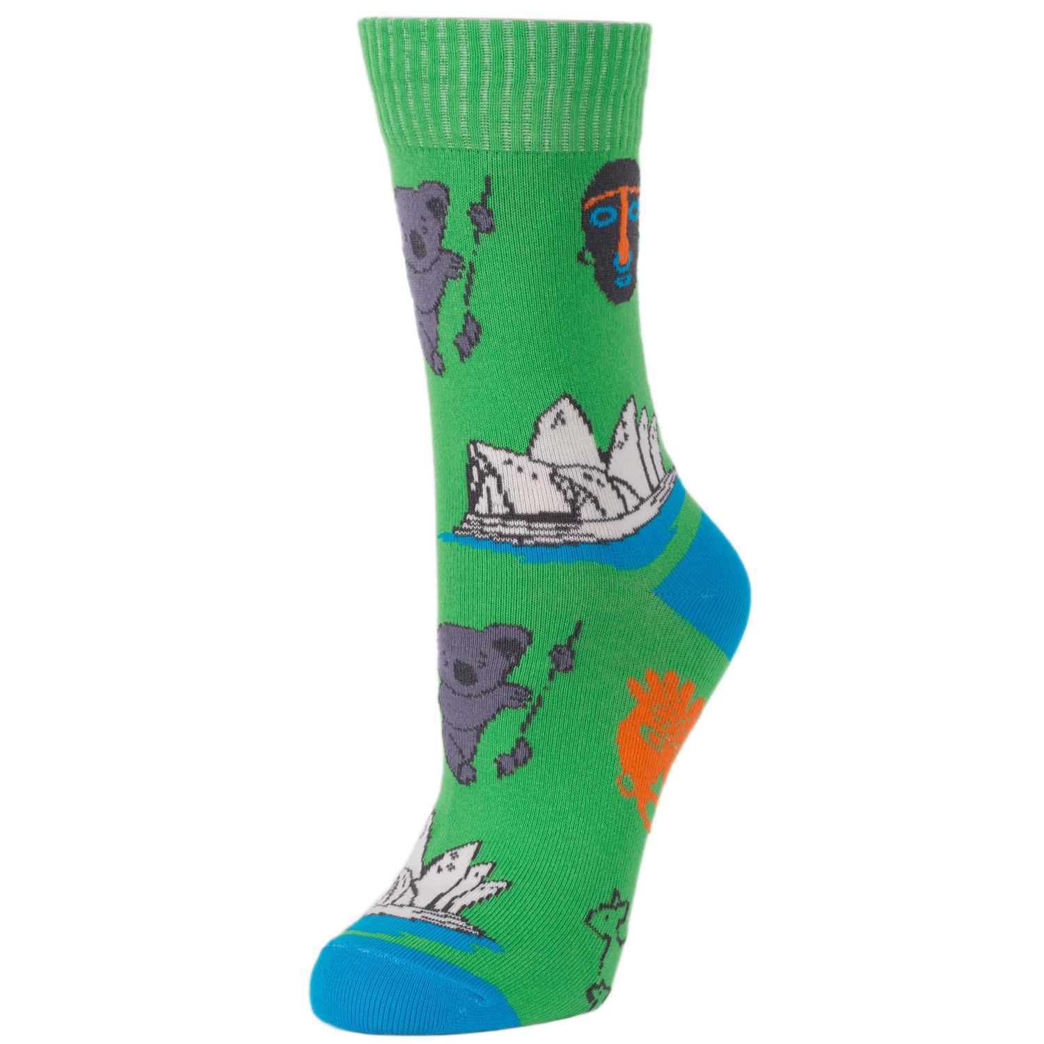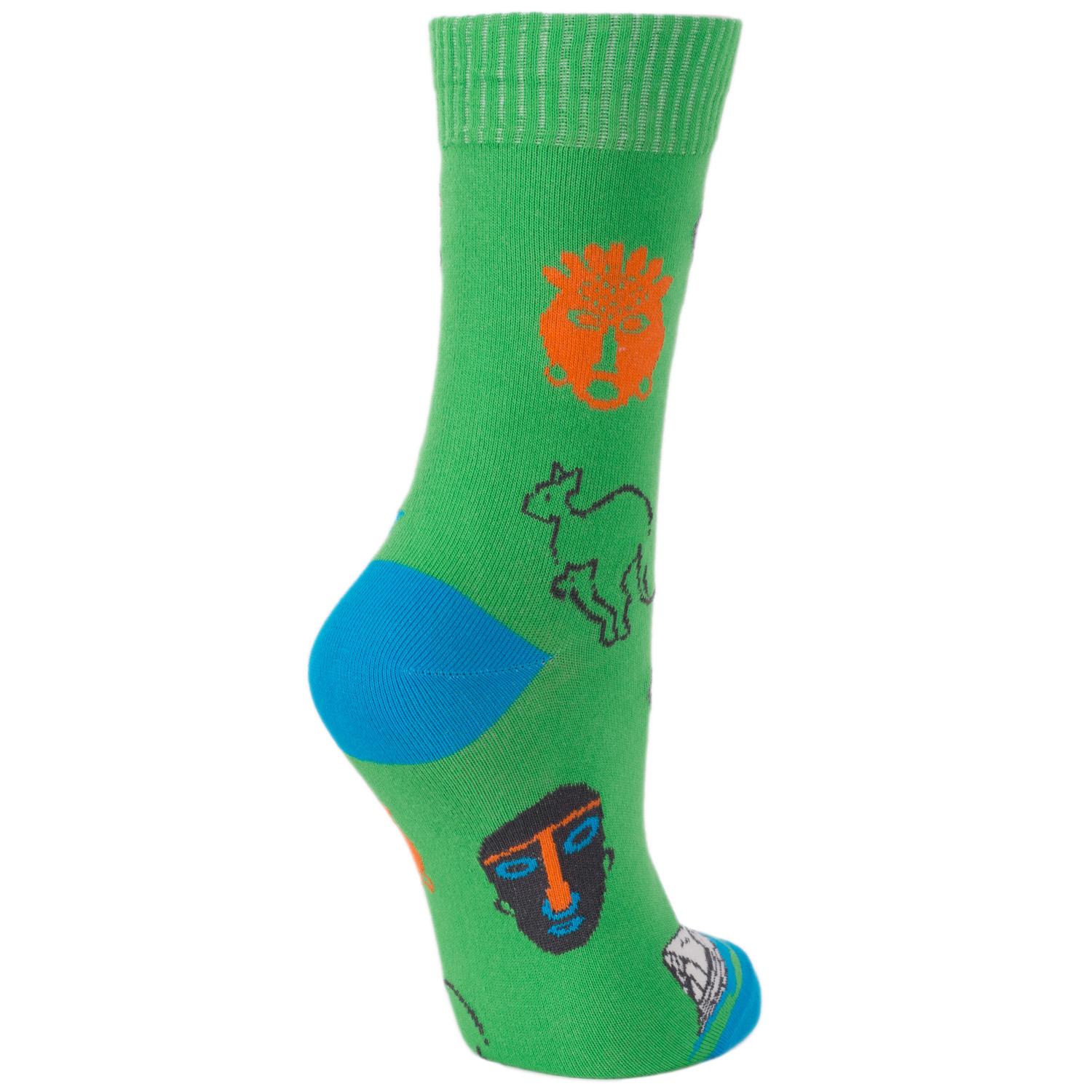 Круглогодичные средней длины женские носки, цвет зеленый-многоцветные (мультиколор), повседневные, шов обычный (не бесшовные), принт (рисунок): с узором, архитектура, люди, путешествия, состав: 82% хлопок, 15% полиамид, 3% эластан, арт. WNM-54. Производитель «ИП Рыбалкин В.С., Московская область, г. Щелково» под брендом «Msclub».