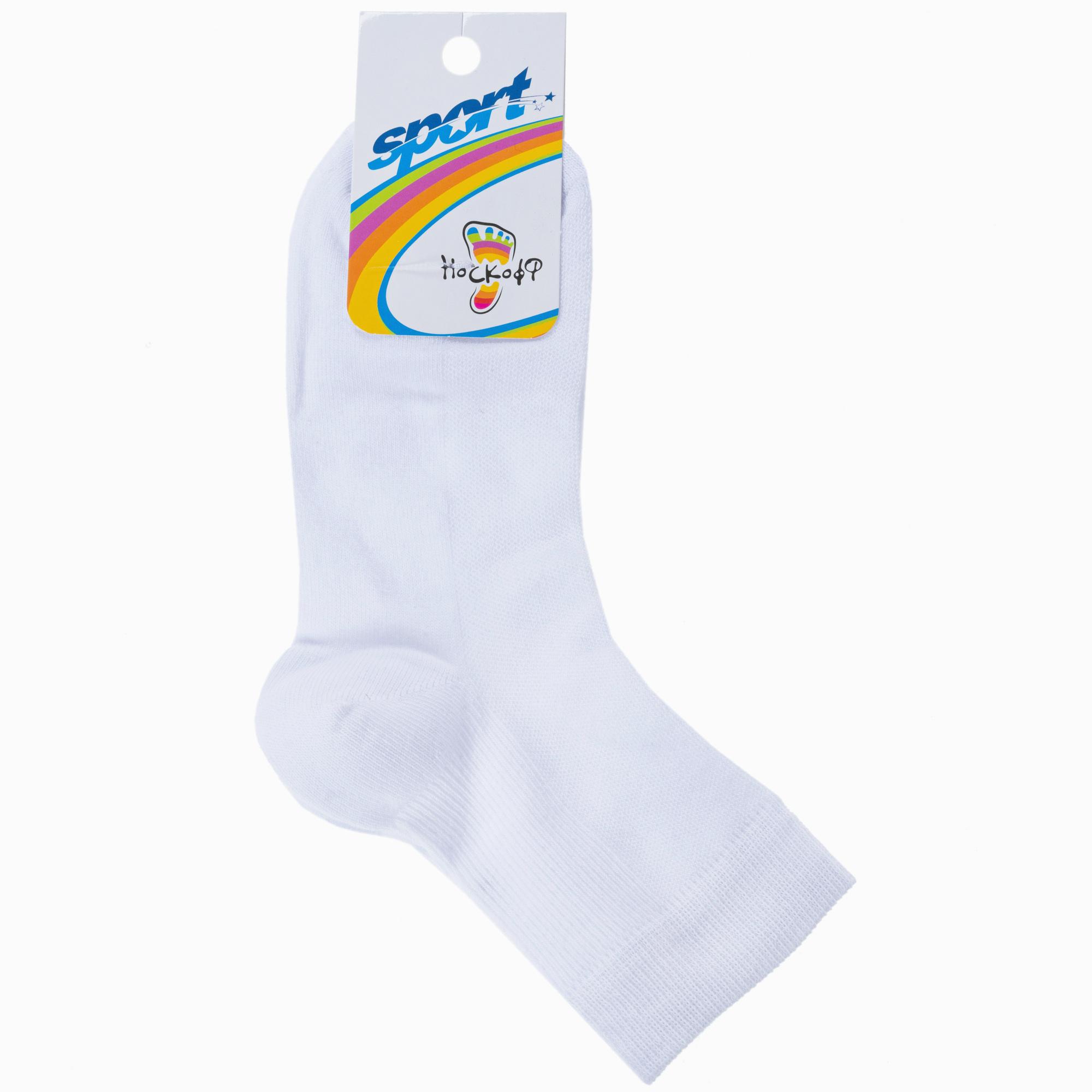 Круглогодичные или летние укороченные женские носки, цвет белый, в сеточку, спортивные, классические, шов обычный (не бесшовные), принт (рисунок): однотонный, состав: 73% хлопок, 25% полиамид, 2% полиуретан (эластан), арт. ФС02. Производитель «Носкофф» Россия под брендом «Носкофф (алсу)».