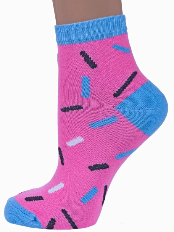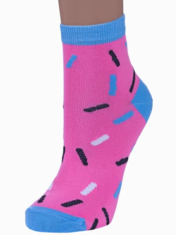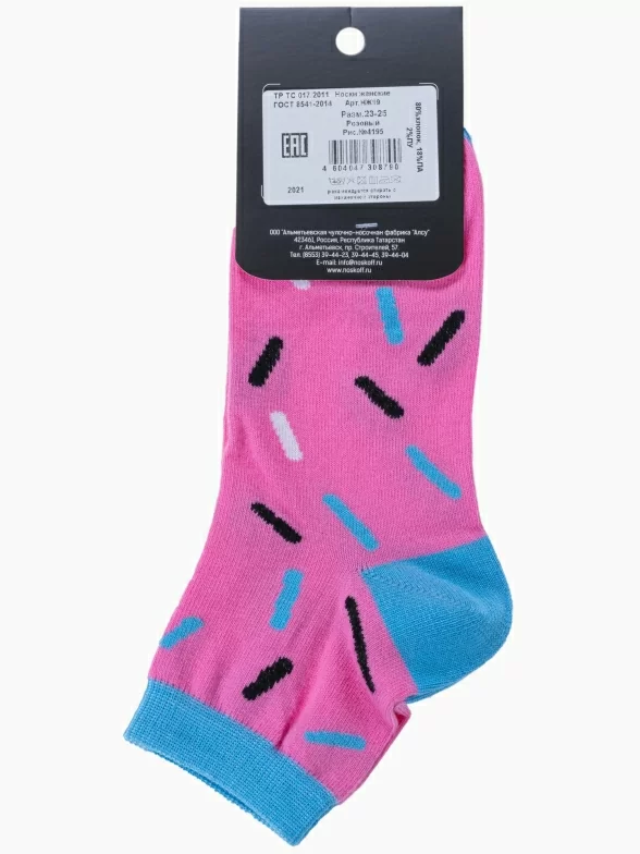 Круглогодичные укороченные женские носки, цвет розовый, повседневные, шов обычный (не бесшовные), принт (рисунок): геометрия, абстрактный, с узором, состав: 80% хлопок, 18% полиамид, 2% полиуретан (эластан), арт. НЖ19. Производитель «Носкофф» Россия под брендом «Носкофф (алсу)».
