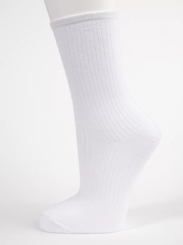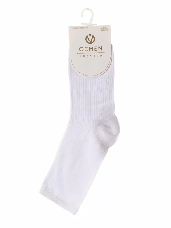 Круглогодичные средней длины женские носки, цвет белый, классические, шов обычный (не бесшовные), принт (рисунок): в рубчик, однотонный, состав: 97% хлопок, 2% полиамид, 1% лайкра, арт. PW841. Производитель «Oemen» Китай под брендом «Oemen».