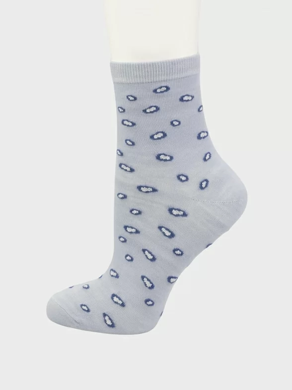 Круглогодичные укороченные женские носки, цвет голубой, классические, шов обычный (не бесшовные), принт (рисунок): горох / точка, состав: 97% хлопок, 2% полиамид, 1% лайкра, арт. PW682. Производитель «Oemen» Китай под брендом «Oemen».