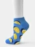 Летние короткие женские носки, цвет синий, классические, шов обычный (не бесшовные), принт (рисунок): фрукты, лимон, состав: 80% хлопок, 17% полиамид, 3% лайкра, арт. PW173. Производитель «Oemen» Китай под брендом «Oemen».