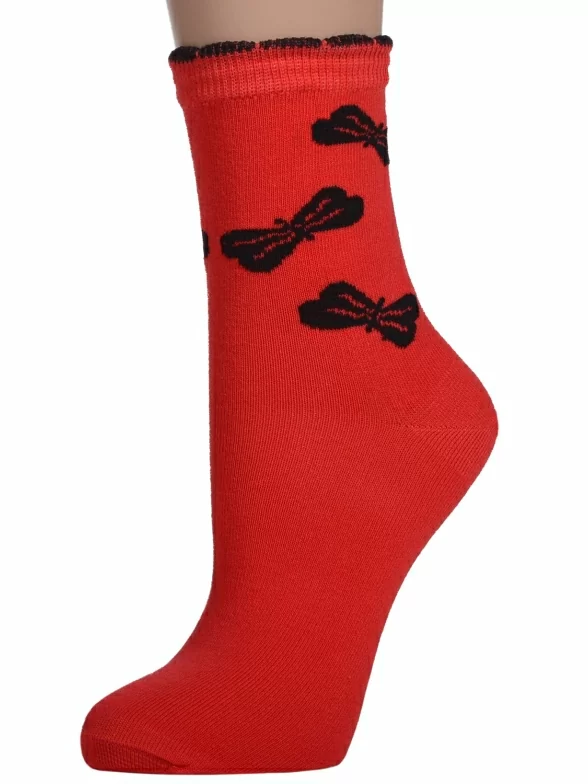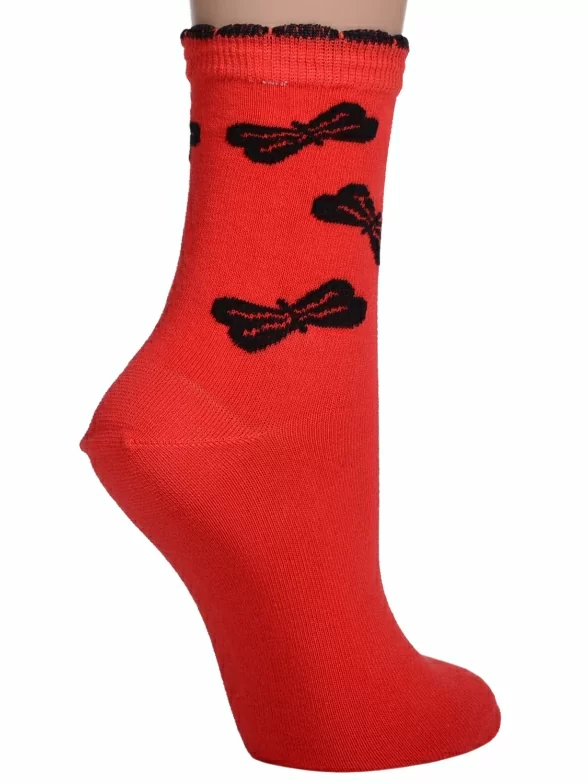 Круглогодичные средней длины женские носки, цвет красный, повседневные, шов обычный (не бесшовные), принт (рисунок): бабочки / бантики, с узором, крупные контрастные рисунки, состав: 82% хлопок, 15% полиамид, 3% эластан, арт. ЖД-21. Производитель «PALAMA» Россия под брендом «Palama».