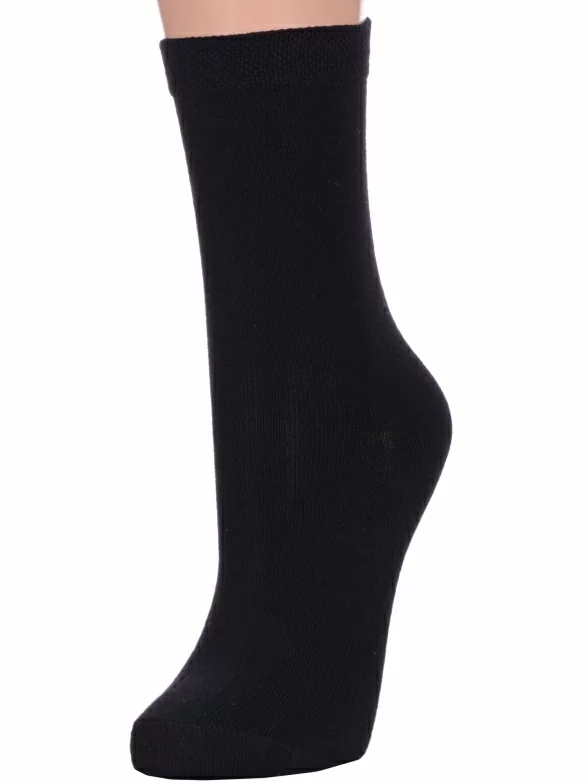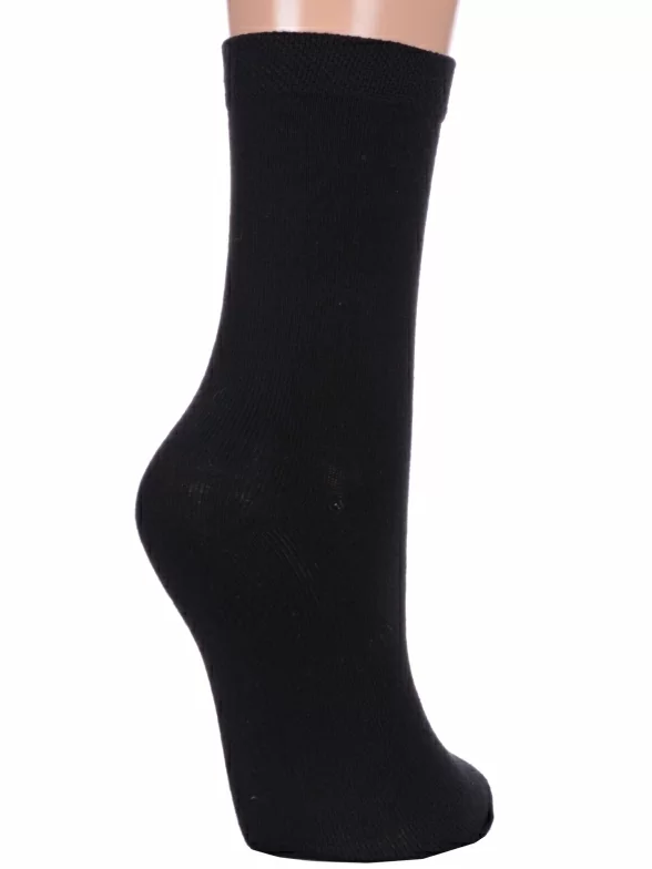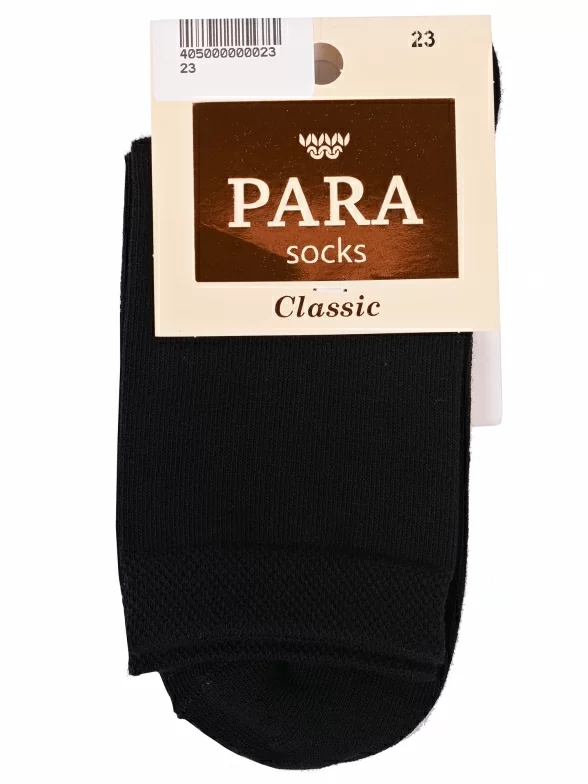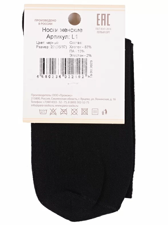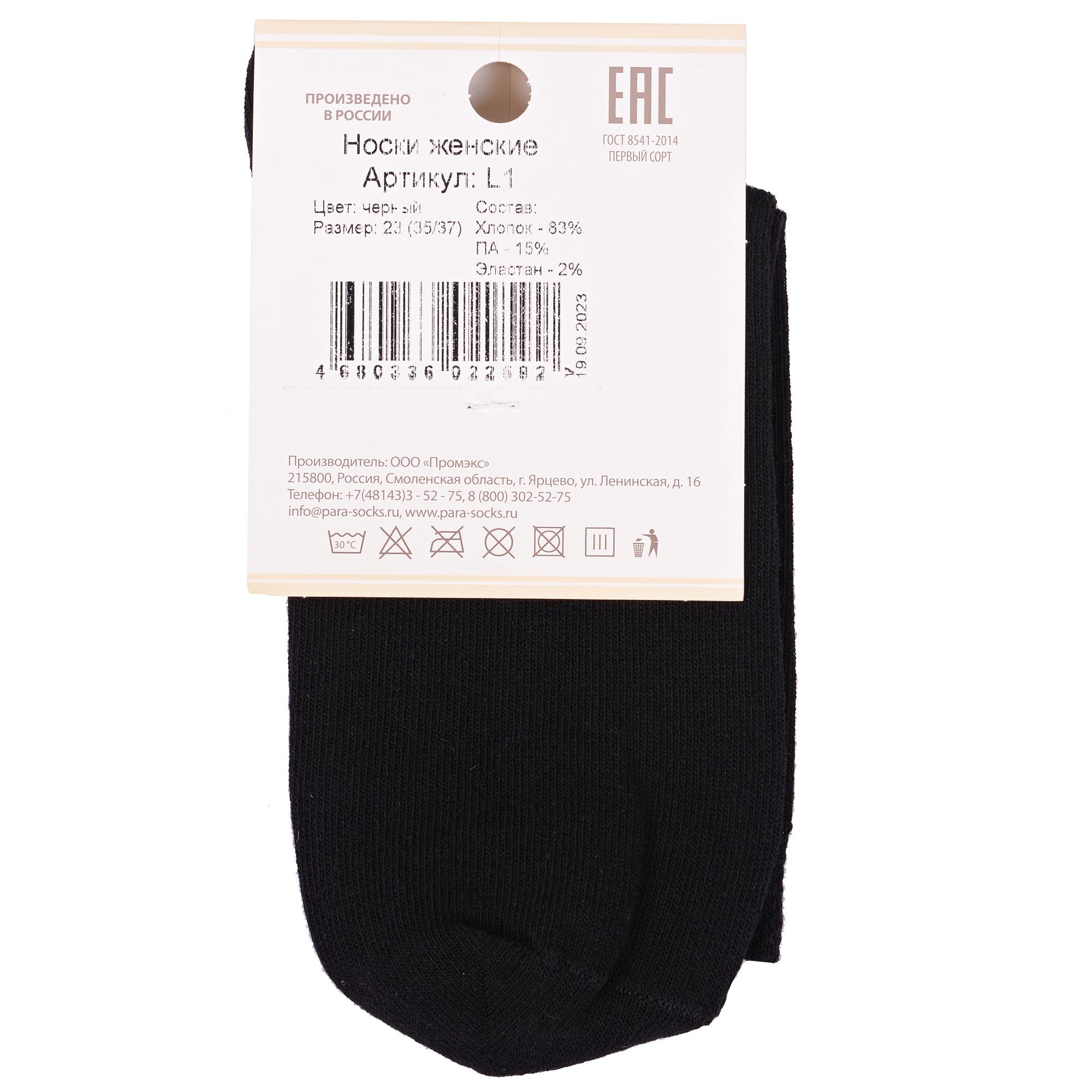 Круглогодичные средней длины женские носки, цвет черный, классические, шов обычный (не бесшовные), принт (рисунок): однотонный, без рисунков/узоров, состав: 83% хлопок, 15% полиамид, 2% эластан, арт. L1. Производитель «ПРОМЭКС ООО, Смоленская область, Россия» под брендом «Para socks».