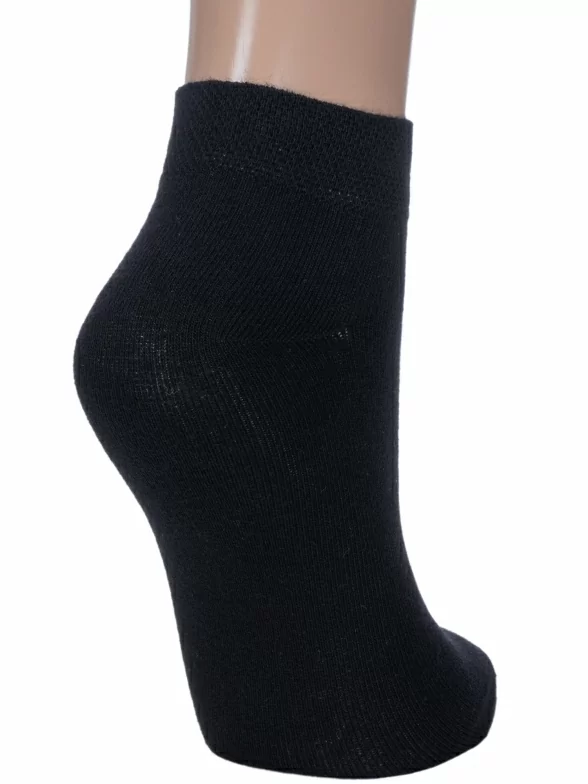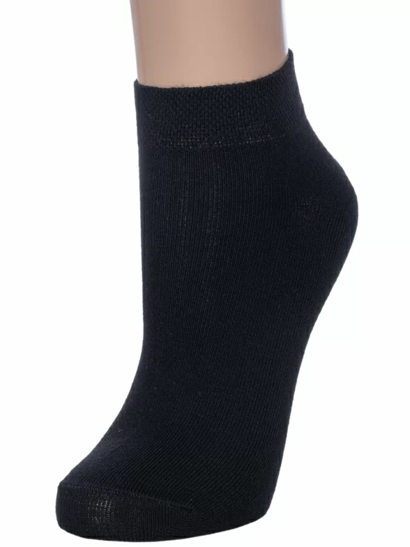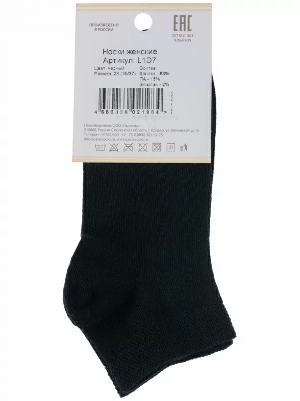 Круглогодичные короткие женские носки, цвет черный, классические, шов обычный (не бесшовные), принт (рисунок): однотонный, без рисунков/узоров, состав: 83% хлопок, 15% полиамид, 2% эластан, арт. L1D7. Производитель «ПРОМЭКС ООО, Смоленская область, Россия» под брендом «Para socks».