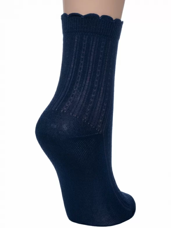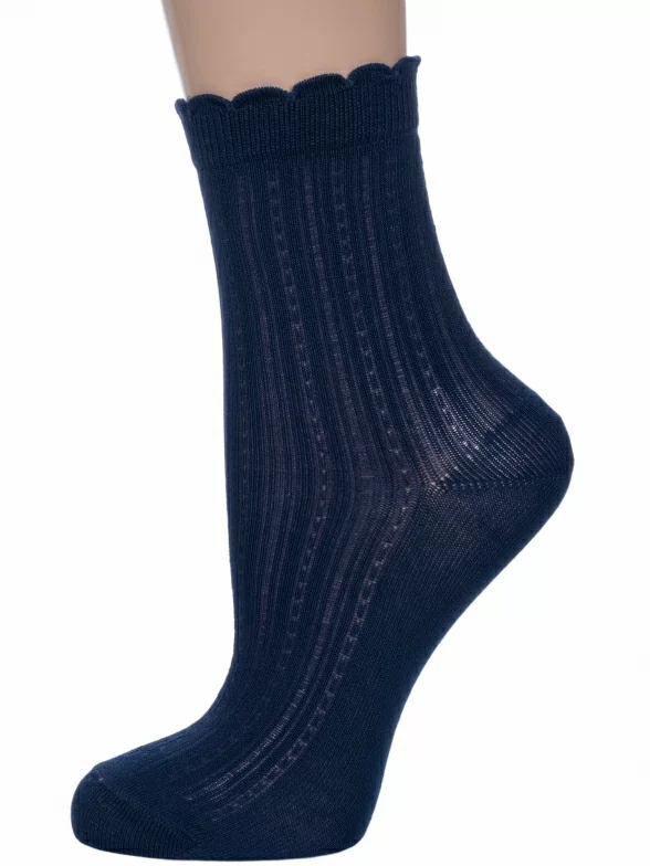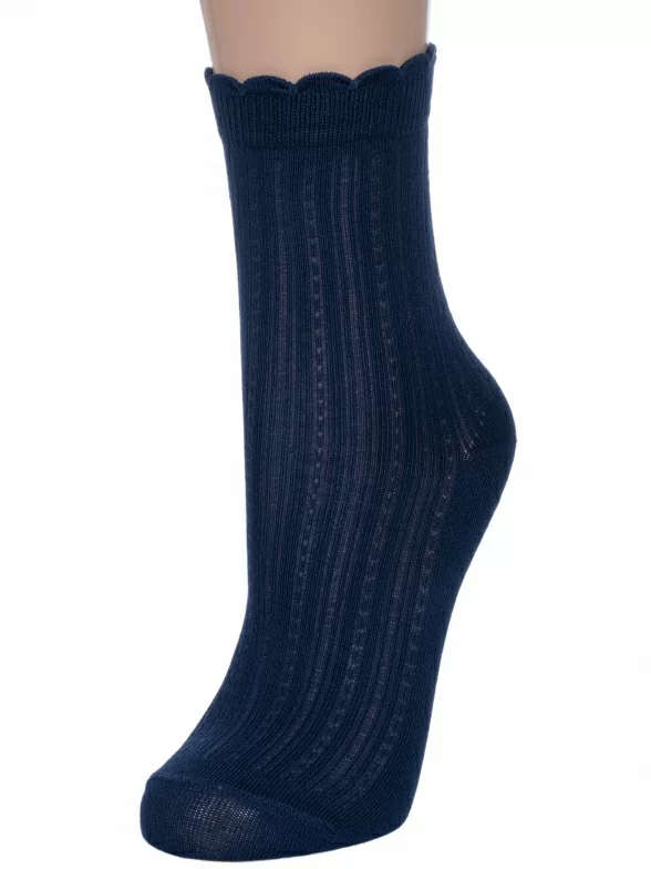 Летние средней длины женские носки, цвет темно-синий, в сеточку, классические, шов обычный (не бесшовные), принт (рисунок): орнамент, в рубчик, с узором, однотонный, состав: 83% бамбук, 17% полиамид, арт. L1D22. Производитель «ПРОМЭКС ООО, Смоленская область, Россия» под брендом «Para socks».