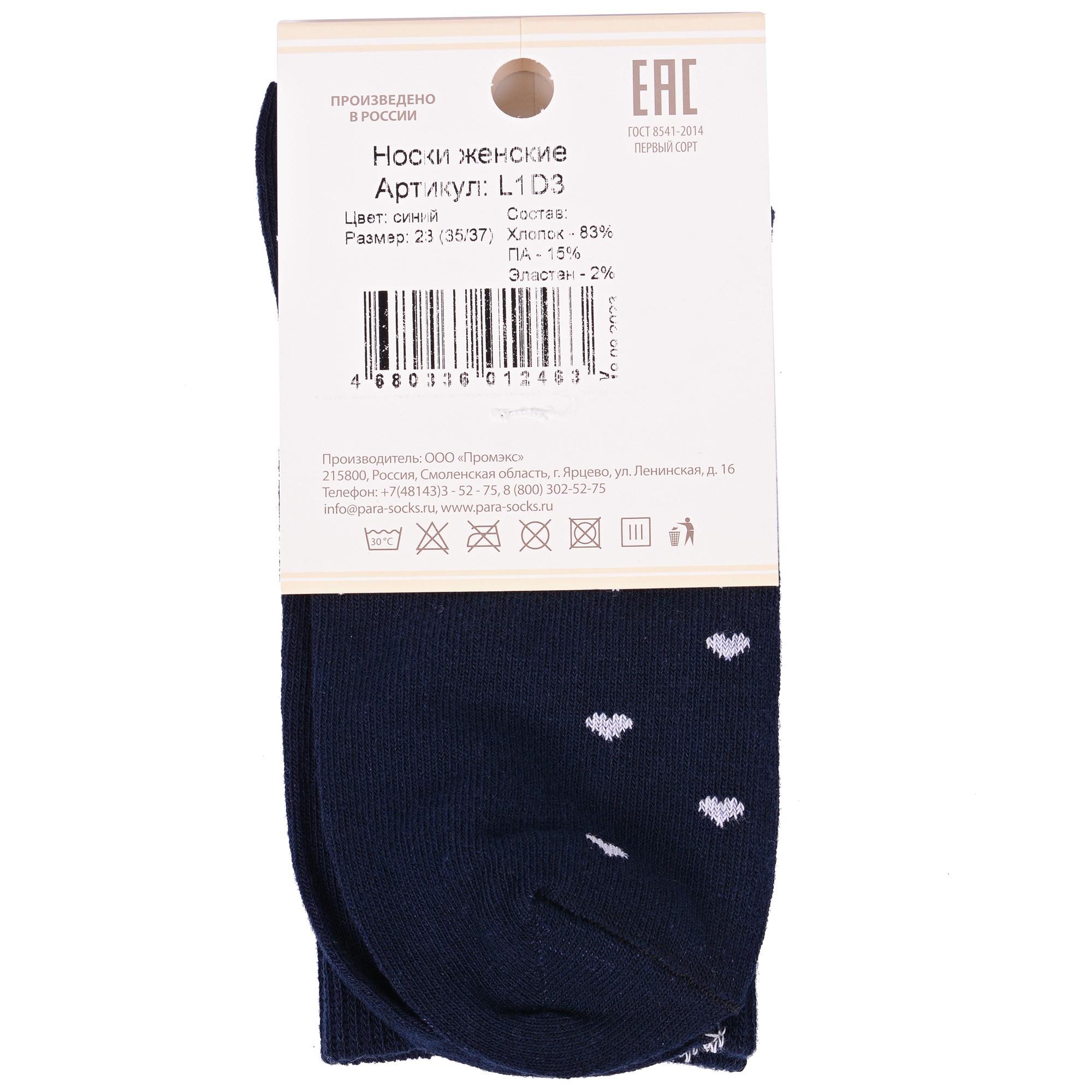 Круглогодичные средней длины женские носки, цвет синий, повседневные, шов обычный (не бесшовные), принт (рисунок): сердечки / поцелуи / любовь, мелкий принт, с узором, состав: 83% хлопок, 15% полиамид, 2% эластан, арт. L1D3. Производитель «ПРОМЭКС ООО, Смоленская область, Россия» под брендом «Para socks».