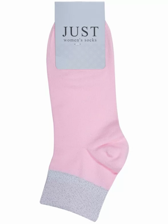 Необычная модель женских носков. Резинка оформлена с использованием люрексовой нити, которая красиво сверкает. Выполнены в однотонном розовом цвете. Отлично сочетаются с повседневной одеждой.