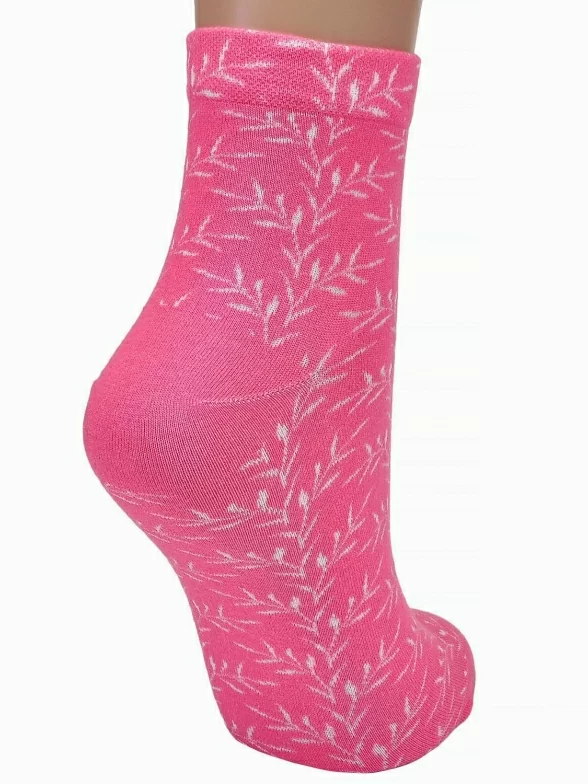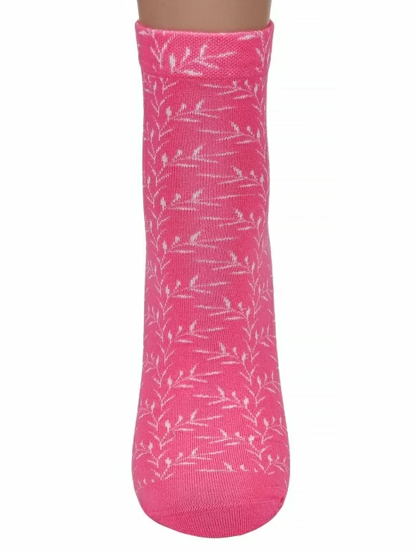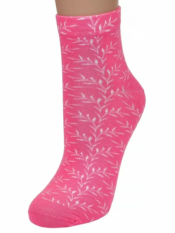 Женские носки RuSocks (Орудьевский трикотаж), Ж-1527, ТЕМНО-РОЗОВЫЕ, рис. Веточки