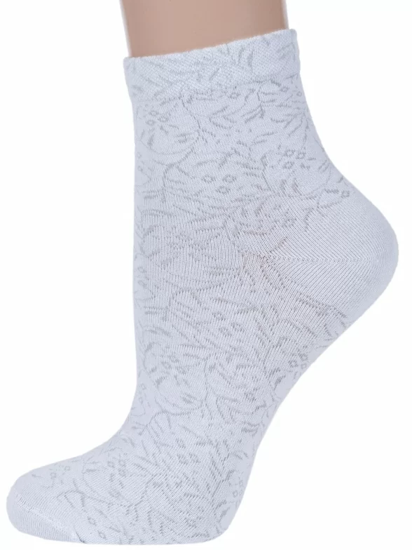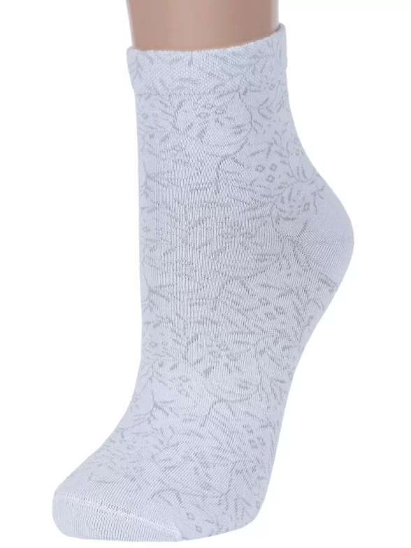 Женские носки RuSocks (Орудьевский трикотаж), Ж-1527, БЕЛЫЕ, рис. Веточки