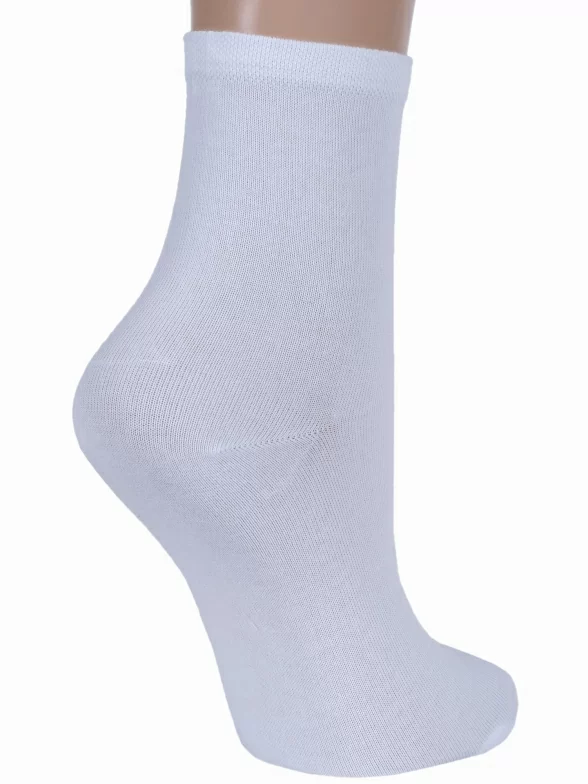 Круглогодичные укороченные женские носки, цвет белый, классические, шов кеттельный (бесшовная технология), принт (рисунок): однотонный, без рисунков/узоров, состав: 80% хлопок, 20% полиамид, арт. Ж-1550. Производитель «ООО Орудьевский трикотаж, Россия» под брендом «Rusocks (орудьевский трикотаж)».