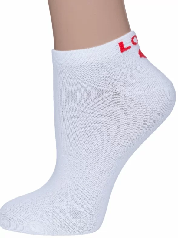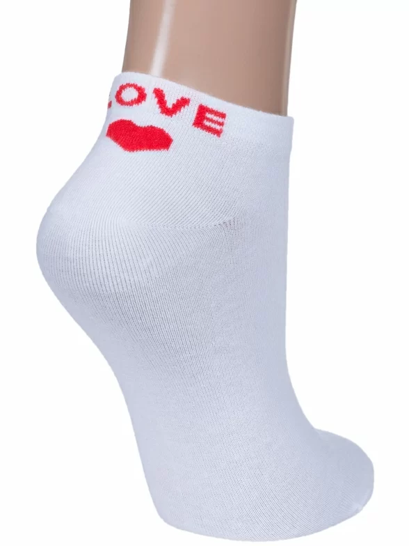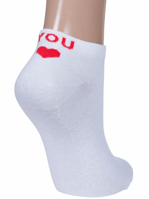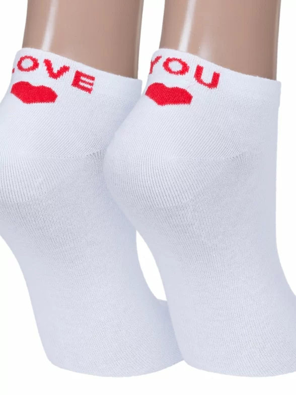 Женские носки бренда RuSocks с вышивкой сзади в виде сердечка и надписи "LOVE" и "YOU" на разных стопах.
