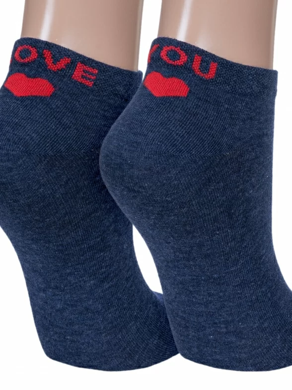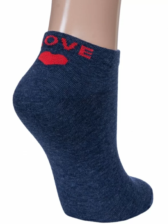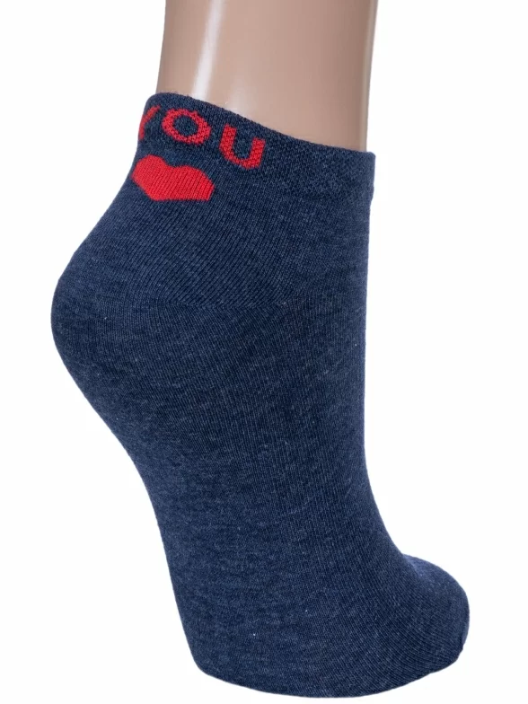 Женские носки бренда RuSocks с вышивкой сзади в виде сердечка и надписи "LOVE" и "YOU" на разных стопах.