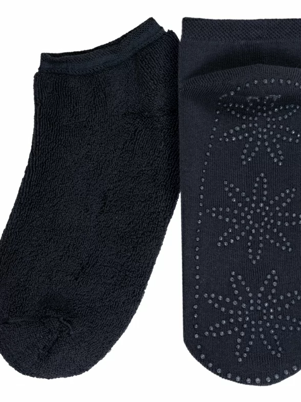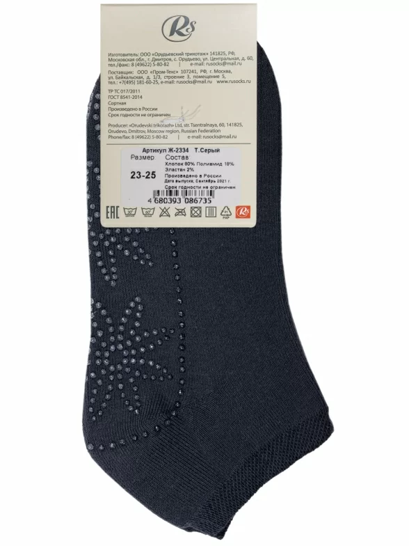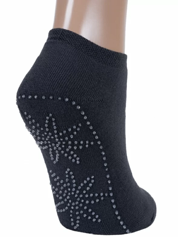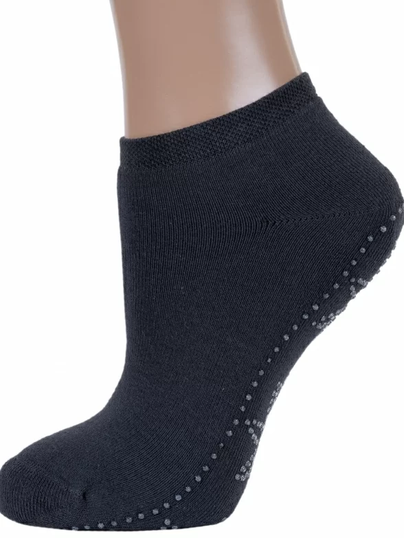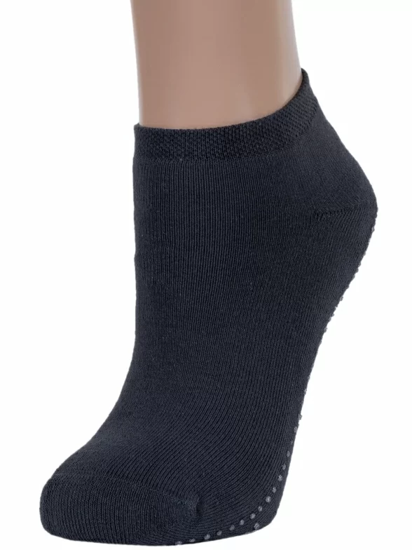 Высококачественные женские короткие носки с внутренней махрой. Модель отличается кеттельным швом, а также устойчивыми к истиранию мыском и пяткой. Интересная отличительная особенность носков – сверкающий узор на подошве, который позволяет не скользить по гладкому полу.