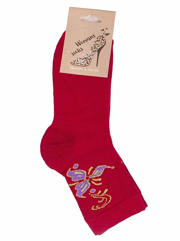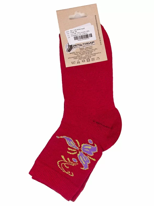 Межсезонные или зимние укороченные женские носки, цвет красный, теплые, состав: 78% хлопок, 20% полиамид, 2% эластан, фабричный артикул С26. Производитель «ООО Альтаир, г. Орск, Оренбургская обл, Россия» под брендом «Альтаир».