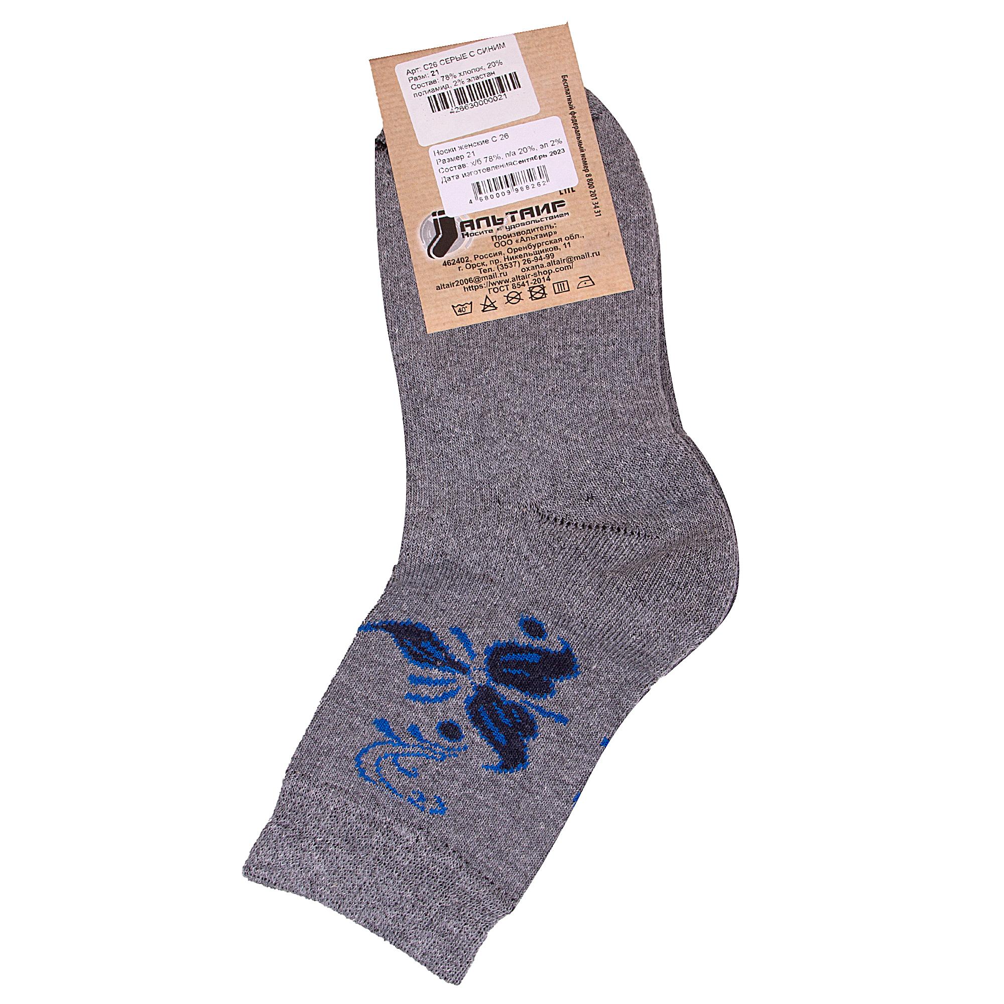 Зимние укороченные женские носки, цвет серый, теплые, состав: 78% хлопок, 20% полиамид, 2% эластан, фабричный артикул С26. Производитель «ООО Альтаир, г. Орск, Оренбургская обл, Россия» под брендом «Альтаир».