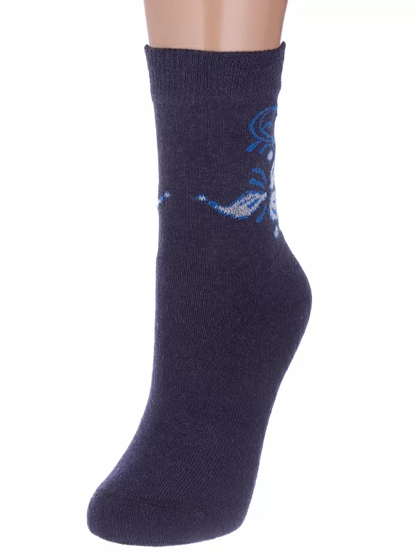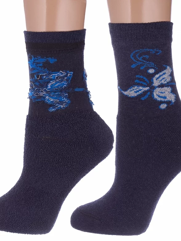 Женские носки с махровой стопой Альтаир, С26, ТЕМНО-СИНИЕ с синим