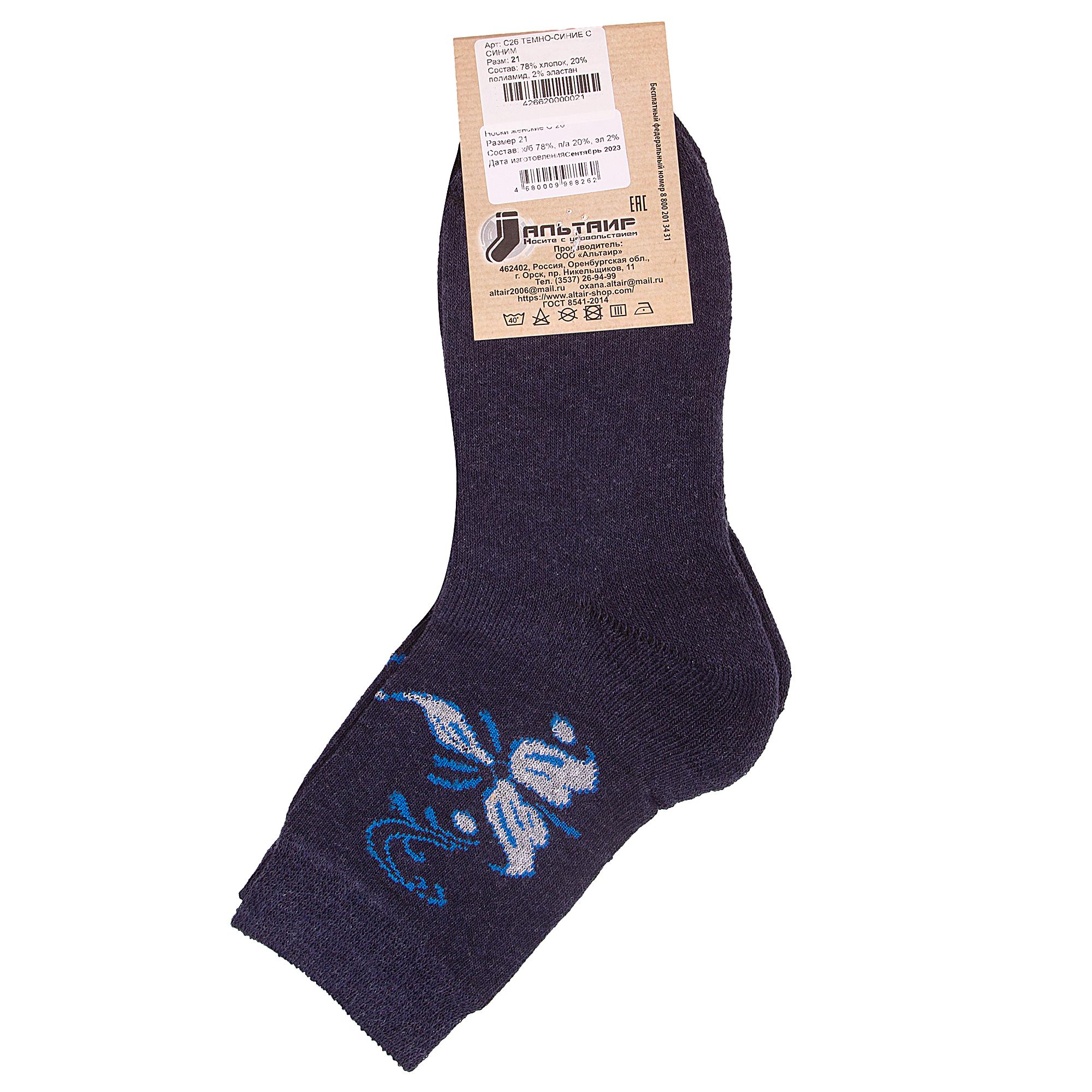 Зимние укороченные женские носки, цвет темно-синий, теплые, состав: 78% хлопок, 20% полиамид, 2% эластан, фабричный артикул С26. Производитель «ООО Альтаир, г. Орск, Оренбургская обл, Россия» под брендом «Альтаир».