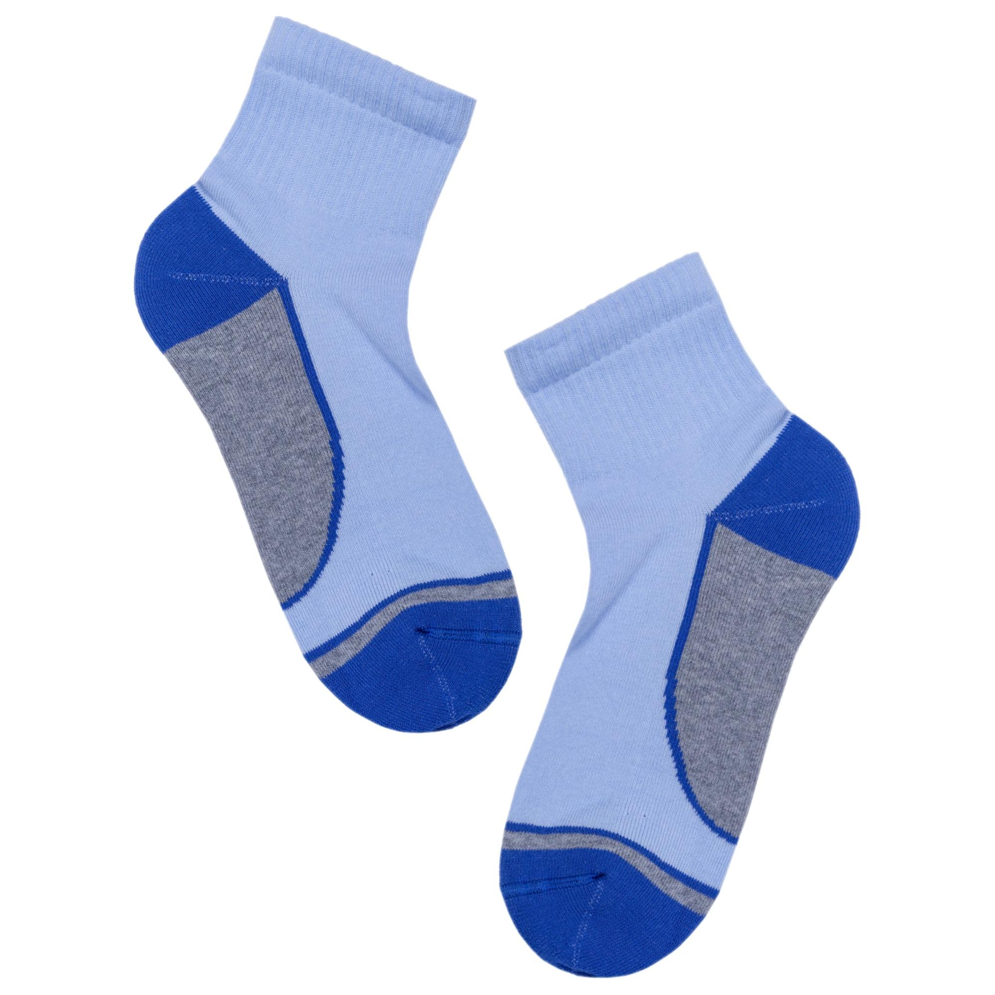 Женские носки с махровым следом от Брестского чулочного комбината. Изготовлены из качественного хлопкового сырья. модель бледного-голубого цвета с яркими контрастными вставками. На 83% состоят из хлопка. 16% полиэстера и 1% эластана делают их более плотными, эластичными и износостойкими.