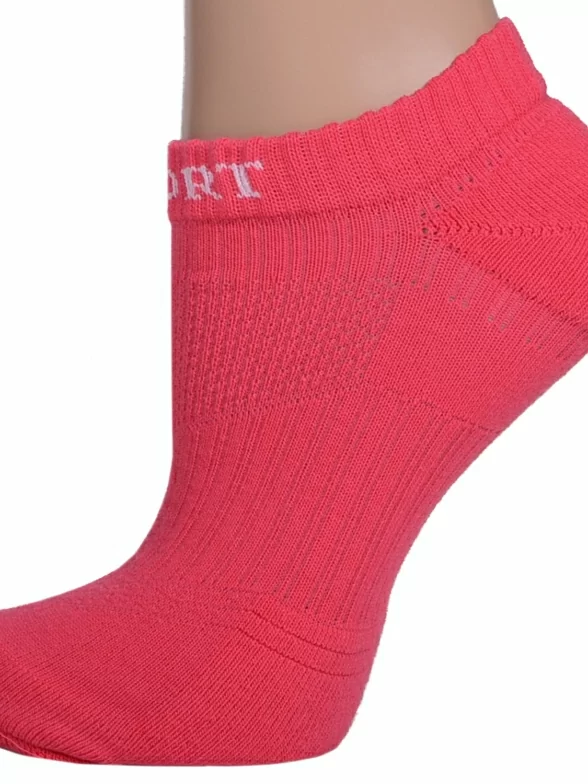 Круглогодичные короткие женские носки, цвет розовый, в сеточку, спортивные, с махровым следом, шов обычный (не бесшовные), принт (рисунок): спортивные, однотонный, небольшой рисунок, состав: 82% хлопок, 15% полиамид, 3% эластан, арт. ЖКС-04. Производитель «PALAMA» Россия под брендом «Palama».