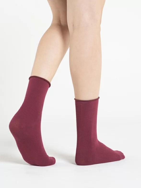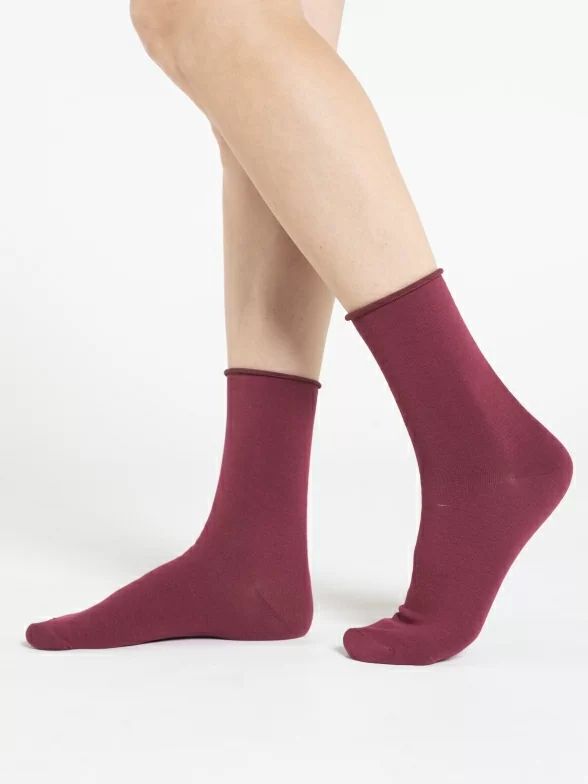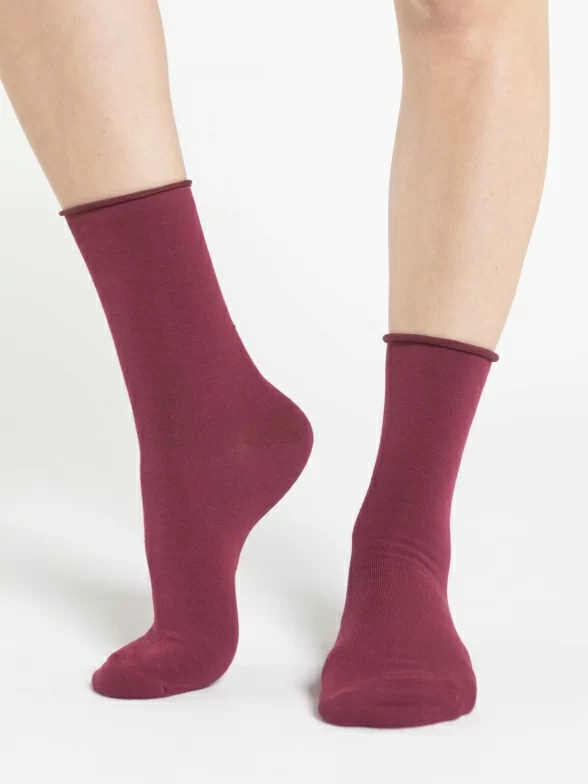 Круглогодичные средней длины женские носки, цвет бордовый, медицинские, шов обычный (не бесшовные), принт (рисунок): однотонный, без рисунков / узоров, состав: 80% хлопок, 17% полиамид, 3% эластан, арт. FD-5. Производитель «Oemen» Китай под брендом «Oemen».