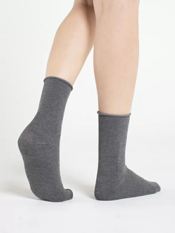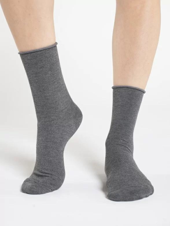 Круглогодичные средней длины женские носки, цвет серый, медицинские, шов обычный (не бесшовные), принт (рисунок): однотонный, без рисунков / узоров, состав: 80% хлопок, 17% полиамид, 3% эластан, арт. FD-5. Производитель «Oemen» Китай под брендом «Oemen».