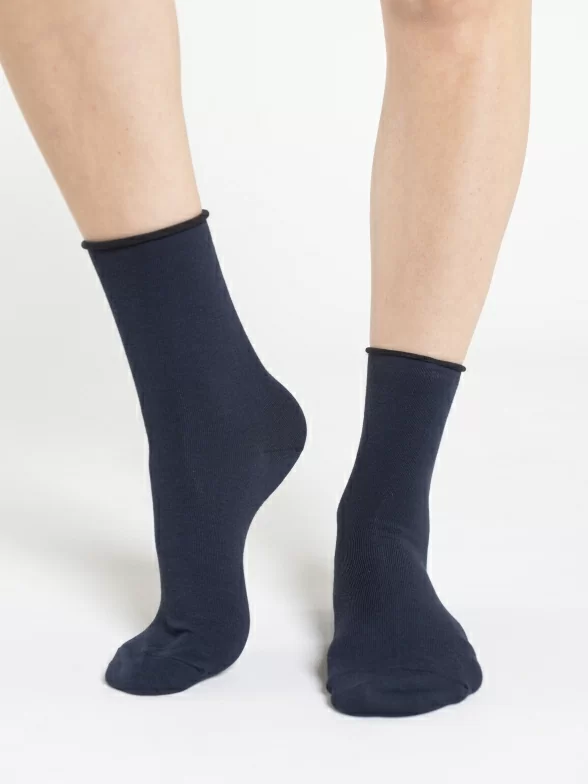 Круглогодичные средней длины женские носки, цвет темно-синий, медицинские, шов обычный (не бесшовные), принт (рисунок): однотонный, без рисунков / узоров, состав: 80% хлопок, 17% полиамид, 3% эластан, арт. FD-5. Производитель «Oemen» Китай под брендом «Oemen».