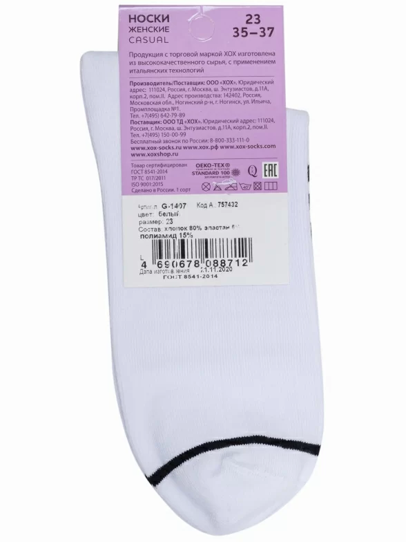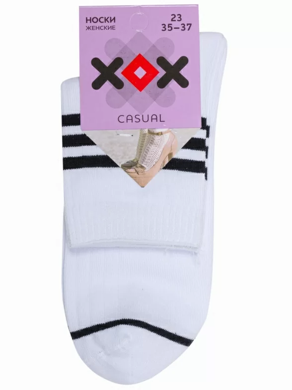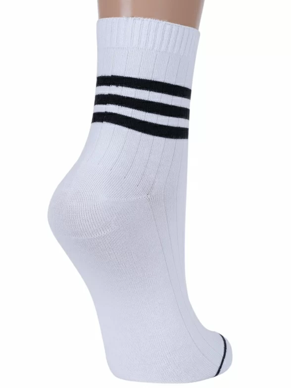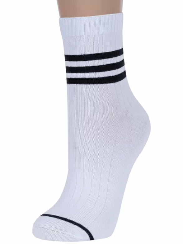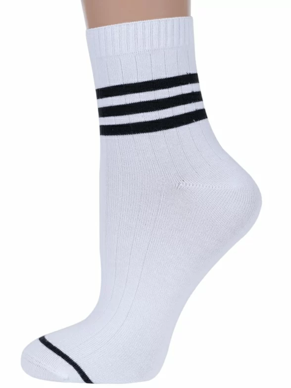 Круглогодичные средней длины женские носки, цвет белый, медицинские, классические, возможно бесшовные, принт (рисунок): полоски, с узором, состав: 80% хлопок, 15% полиамид, 5% эластан или 88% хлопок, 10% полиамид, 2% эластан, арт. G-1407. Производитель «ХОХ» Россия под брендом «Хох».