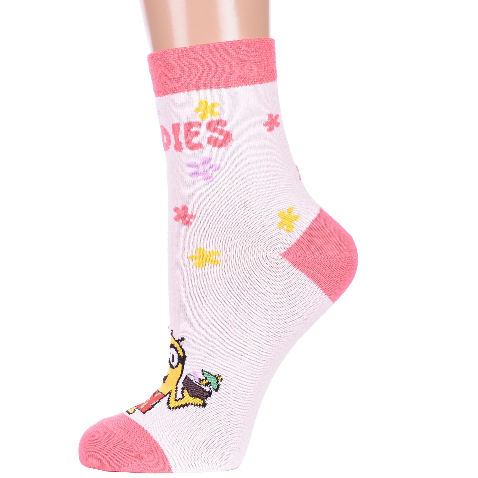 Круглогодичные укороченные женские носки, цвет розовый, повседневные, шов плоский, принт (рисунок): цветы / растения, фильмы / сериалы / мультики, надписи, контрастные пятка / мысок / резинка, с узором, состав: 70% хлопок, 28% полиамид, 2% эластан, арт. 20С1124. Производитель «Брестский чулочный комбинат ОАО, Беларусь» под брендом «Брестские (бчк)».