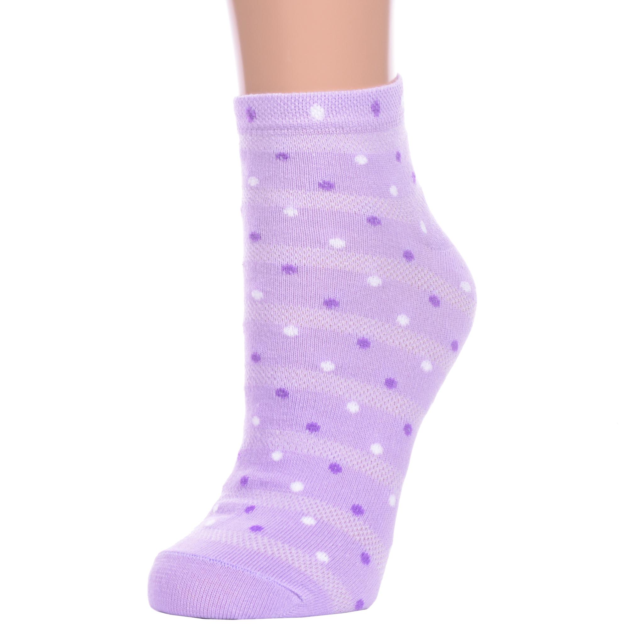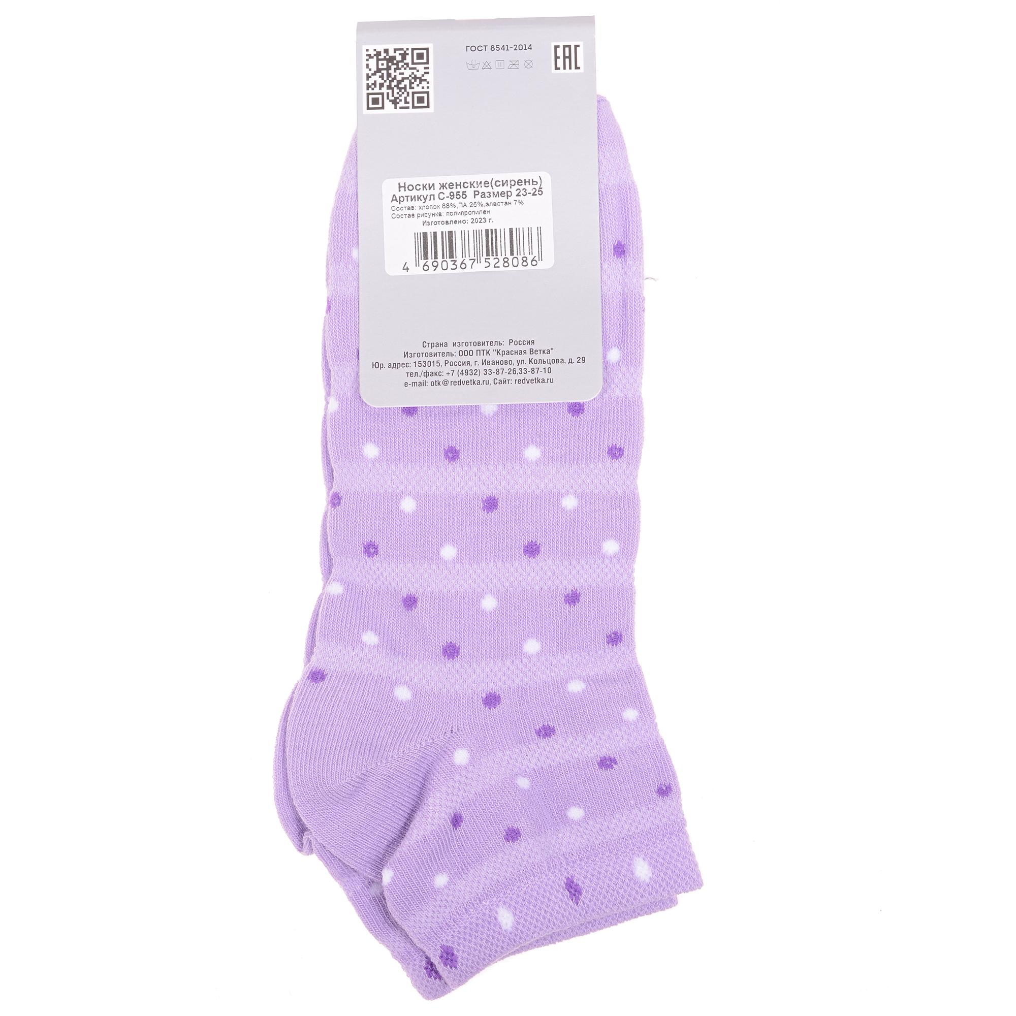 Летние короткие женские носки, цвет сиреневый, повседневные, в сеточку, возможно бесшовные, принт (рисунок): горох/точка, с узором, состав: 68% хлопок, 25% полиамид, 7% эластан, арт. С-955. Производитель «КРАСНАЯ ВЕТКА» Россия под брендом «Красная ветка».