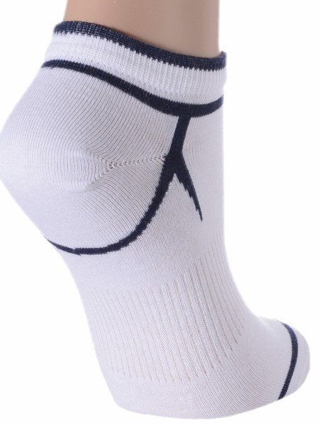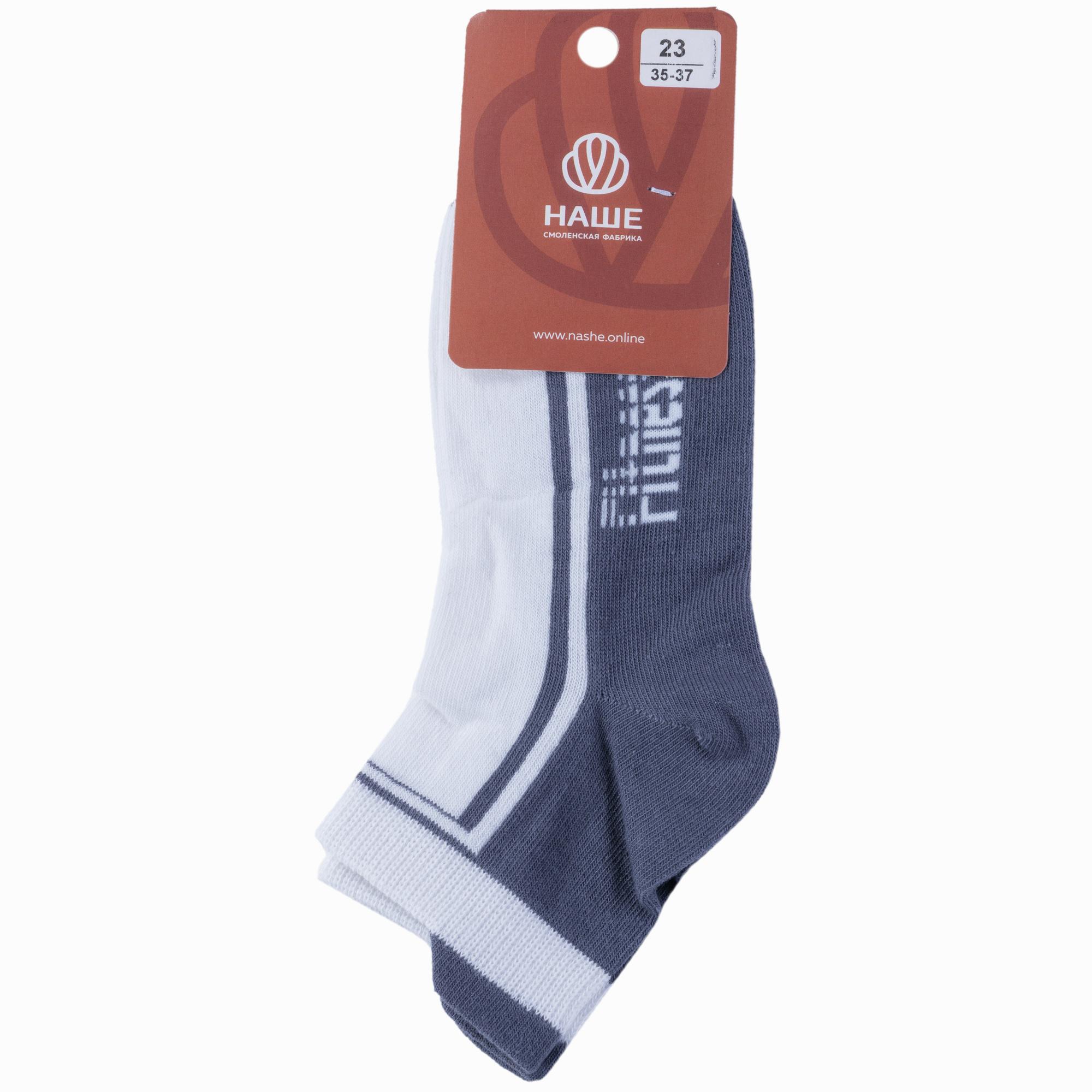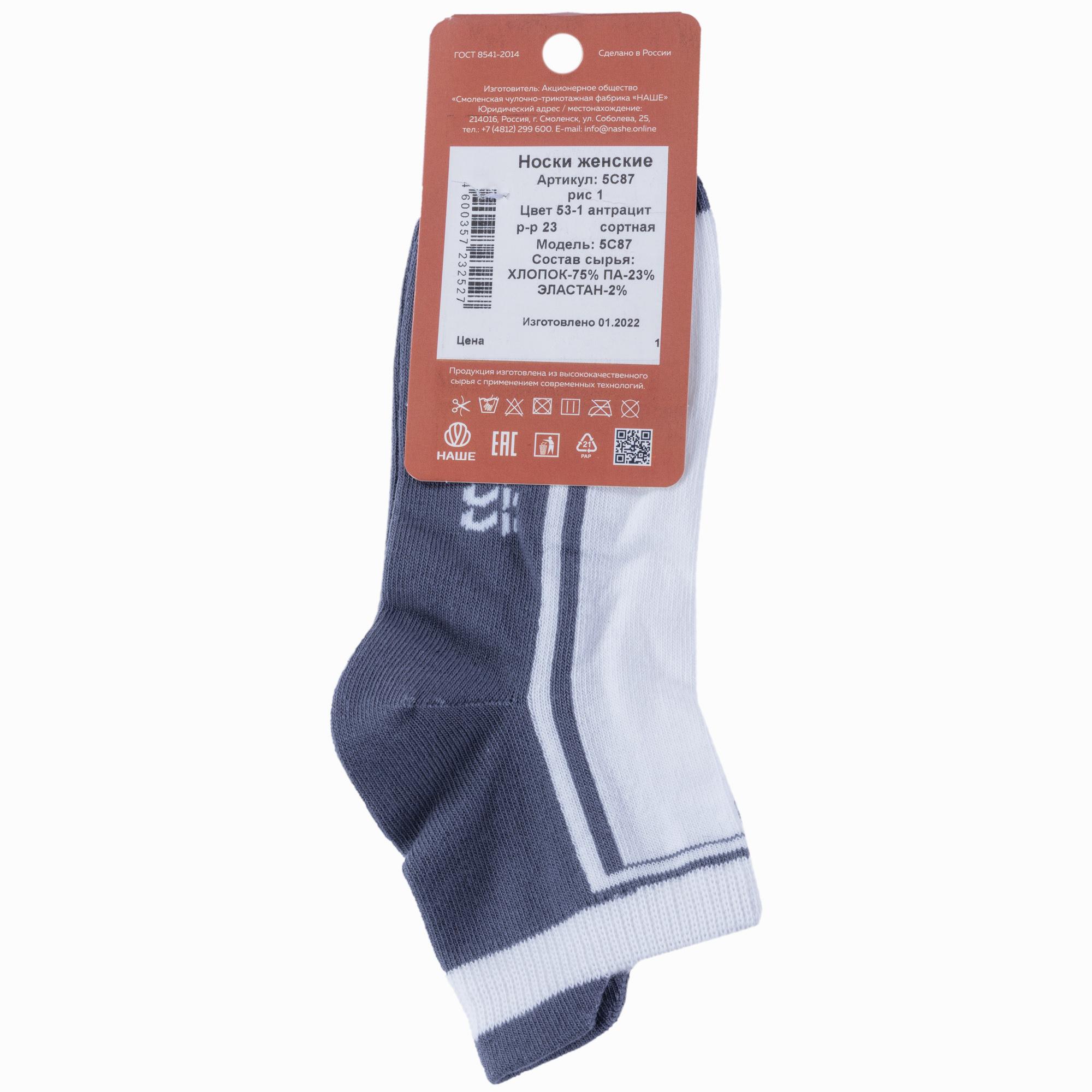 Круглогодичные короткие женские носки, цвет серый, спортивные, шов обычный (не бесшовные), принт (рисунок): с узором, спортивные, состав: 75% хлопок, 23% полиамид, 2% эластан, арт. 5С87. Производитель «Смоленская чулочная фабрика, Россия» под брендом «Наше смоленской чулочной фабрики».