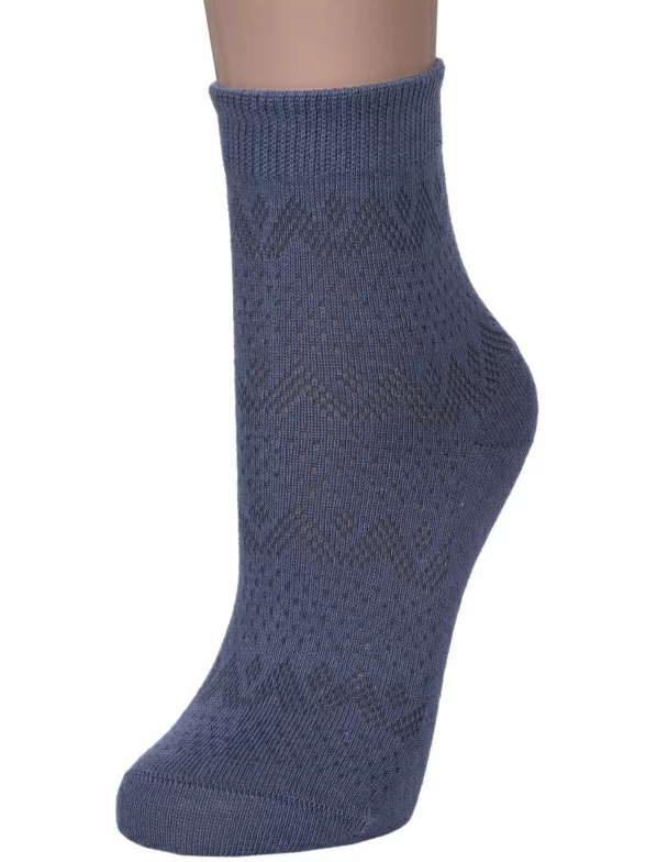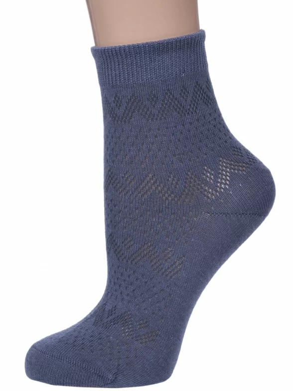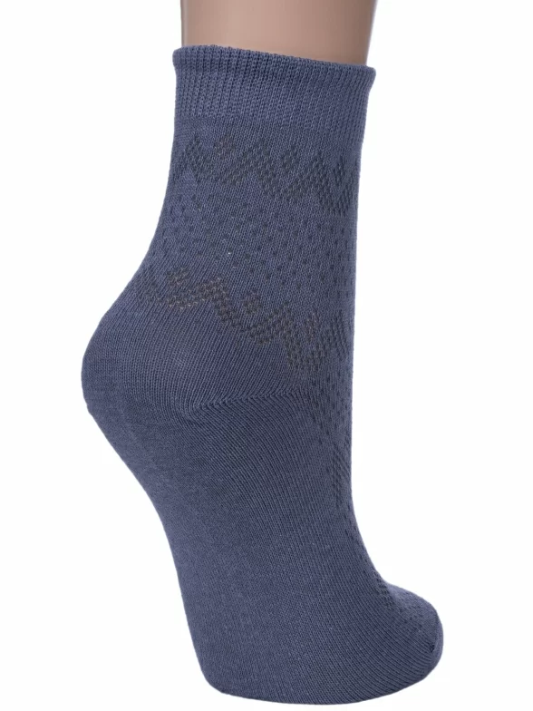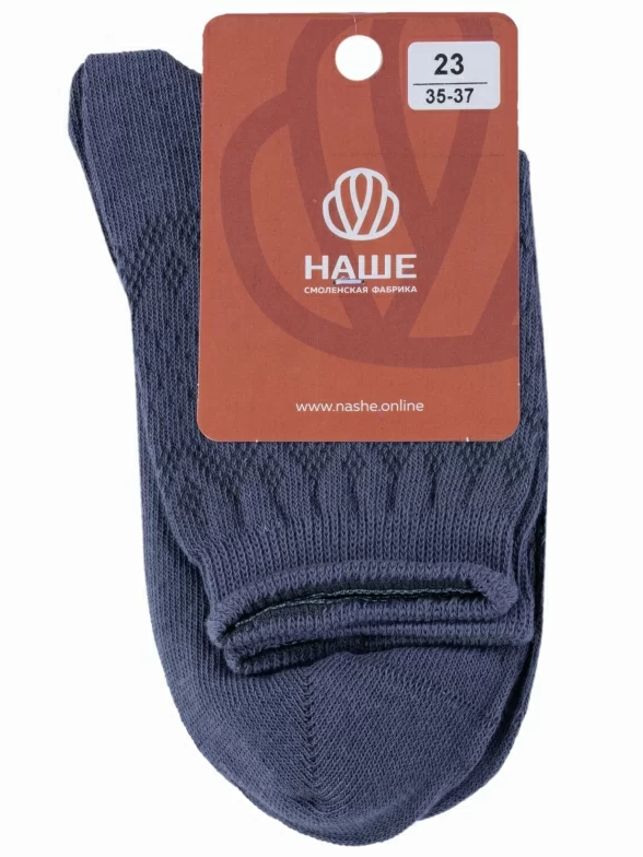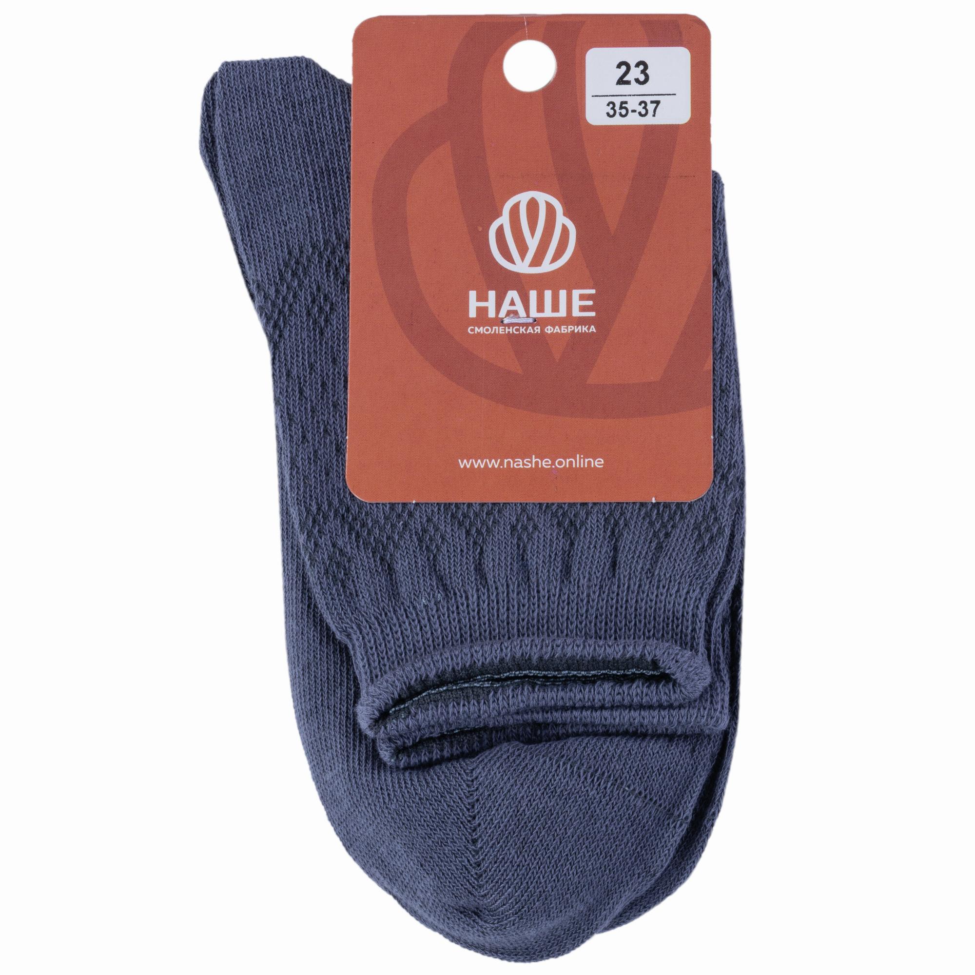 Летние укороченные женские носки, цвет темно-серый, повседневные, классические, в сеточку, шов обычный (не бесшовные), принт (рисунок): однотонный, орнамент, с узором, состав: 90% хлопок, 10% полиамид, арт. С196. Производитель «Смоленская чулочная фабрика, Россия» под брендом «Наше смоленской чулочной фабрики».
