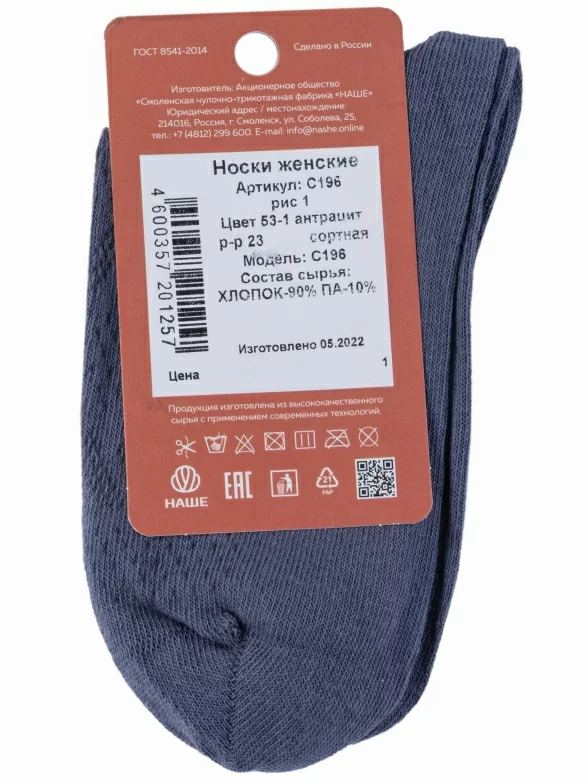 Женские носки "НАШЕ" Смоленской чулочной фабрики, С196, рис. 1, АНТРАЦИТ №53-1