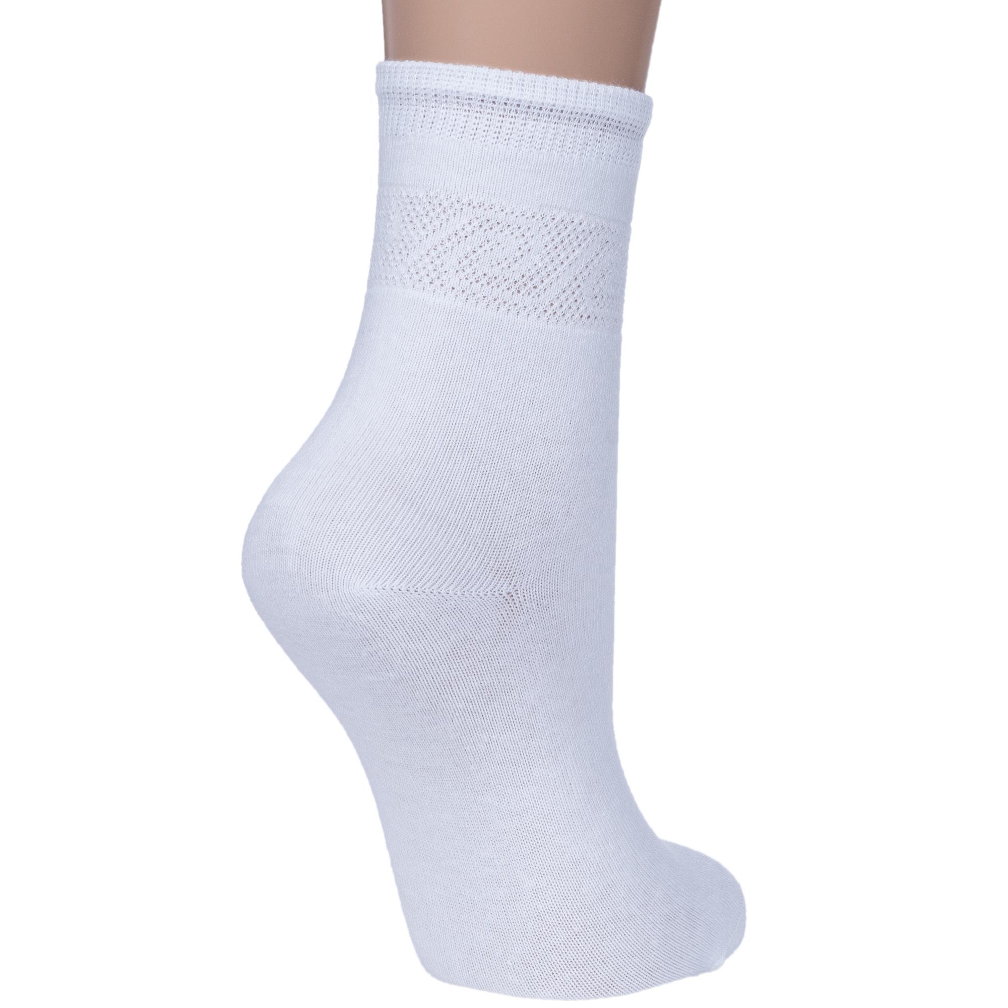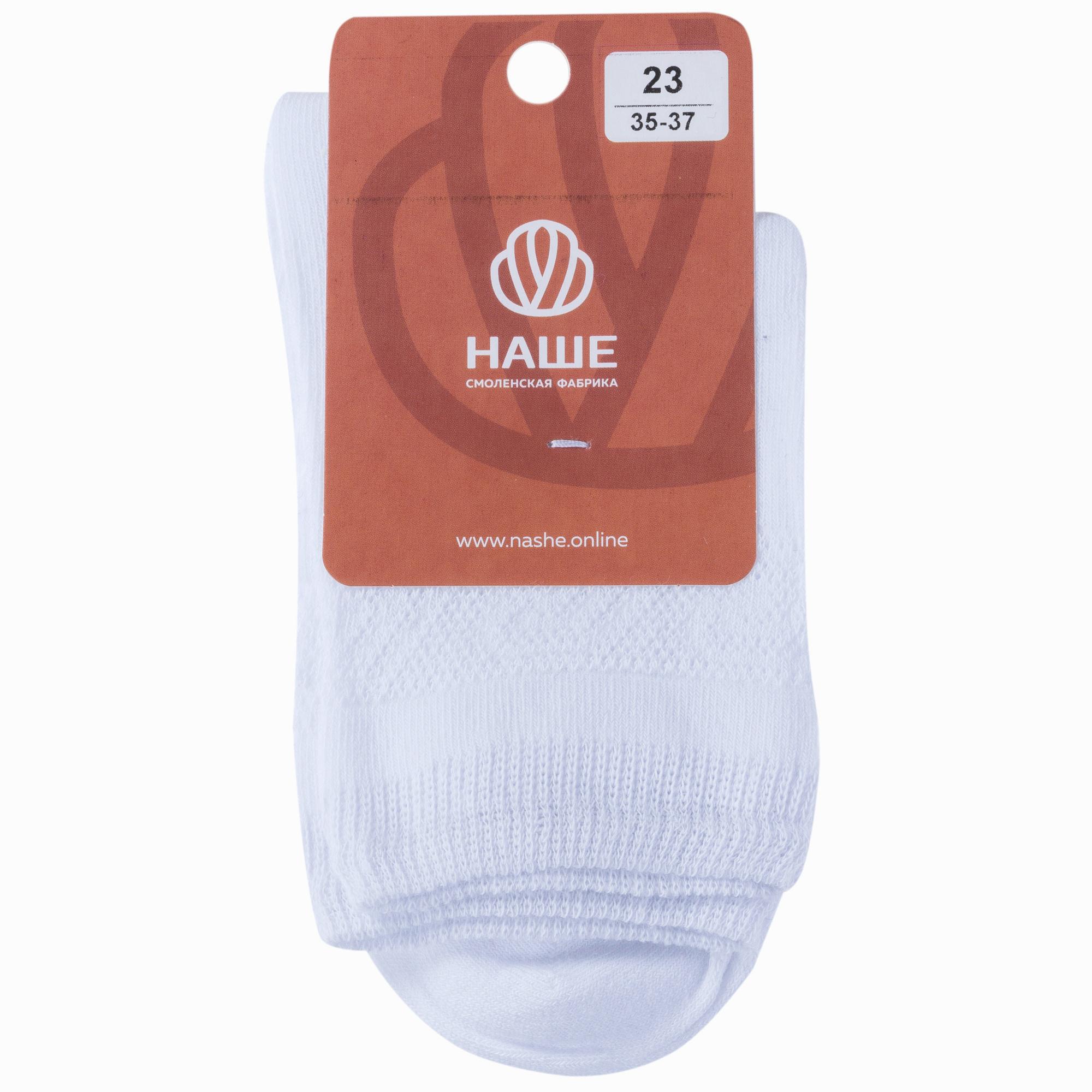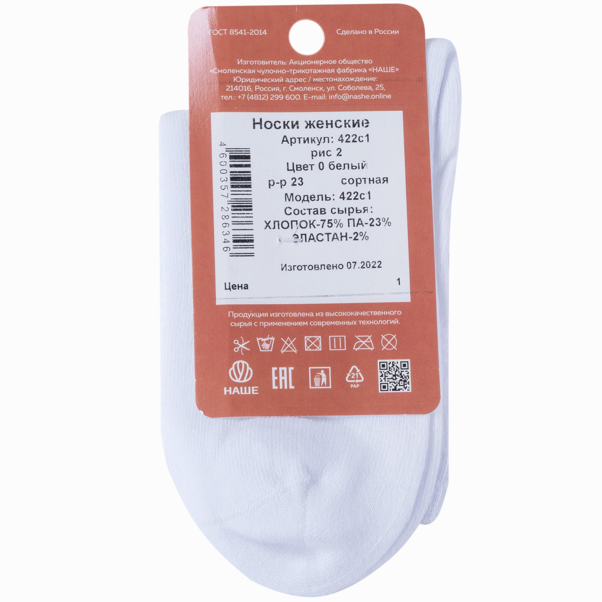Круглогодичные укороченные женские носки, цвет белый, в сеточку, классические, шов обычный (не бесшовные), принт (рисунок): однотонный, с узором, орнамент, состав: 75% хлопок, 23% полиамид, 2% эластан, арт. 422С1. Производитель «Смоленская чулочная фабрика, Россия» под брендом «Наше смоленской чулочной фабрики».