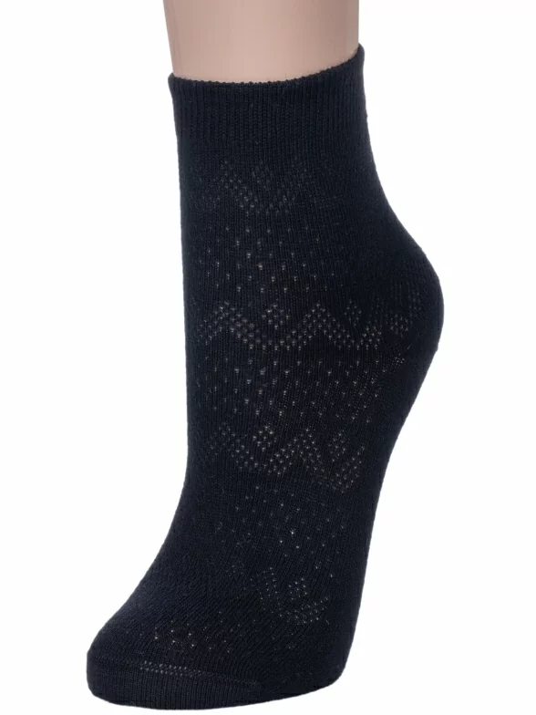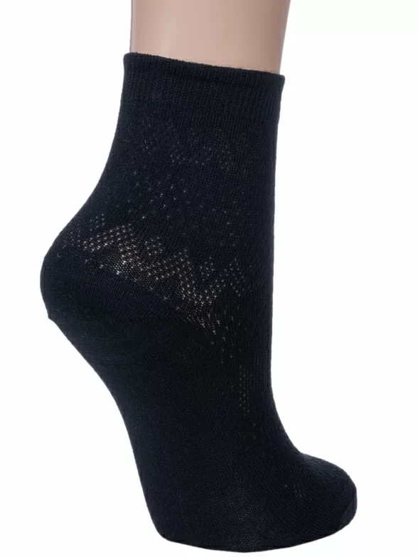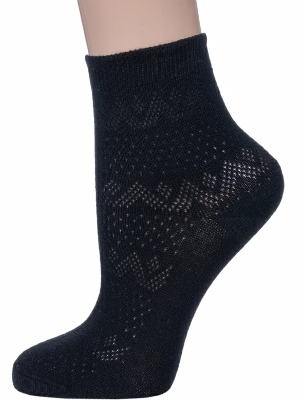 Летние укороченные женские носки, цвет черный, повседневные, классические, в сеточку, шов обычный (не бесшовные), принт (рисунок): однотонный, орнамент, с узором, состав: 90% хлопок, 10% полиамид, арт. С196. Производитель «Смоленская чулочная фабрика, Россия» под брендом «Наше смоленской чулочной фабрики».