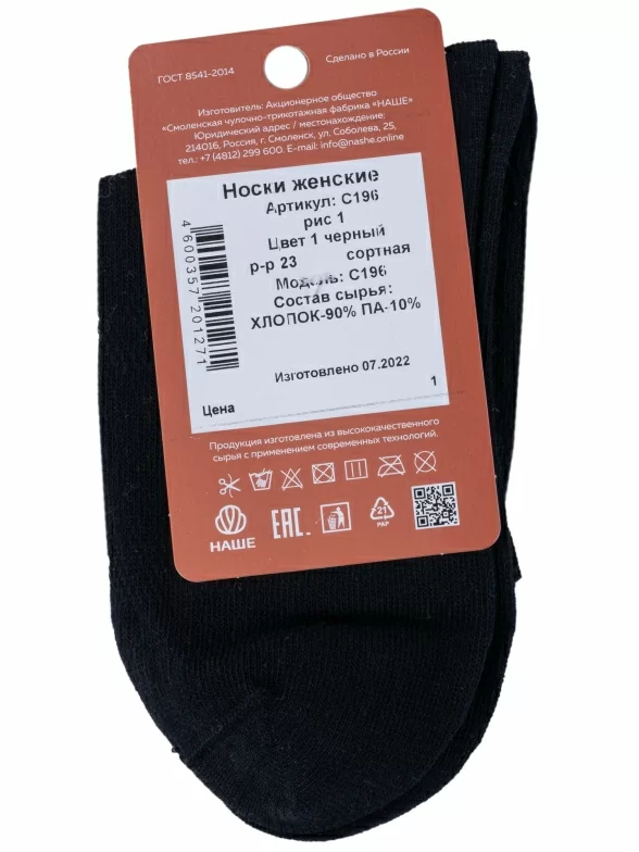 Женские носки "НАШЕ" Смоленской чулочной фабрики, С196, рис. 1, ЧЕРНЫЕ №1