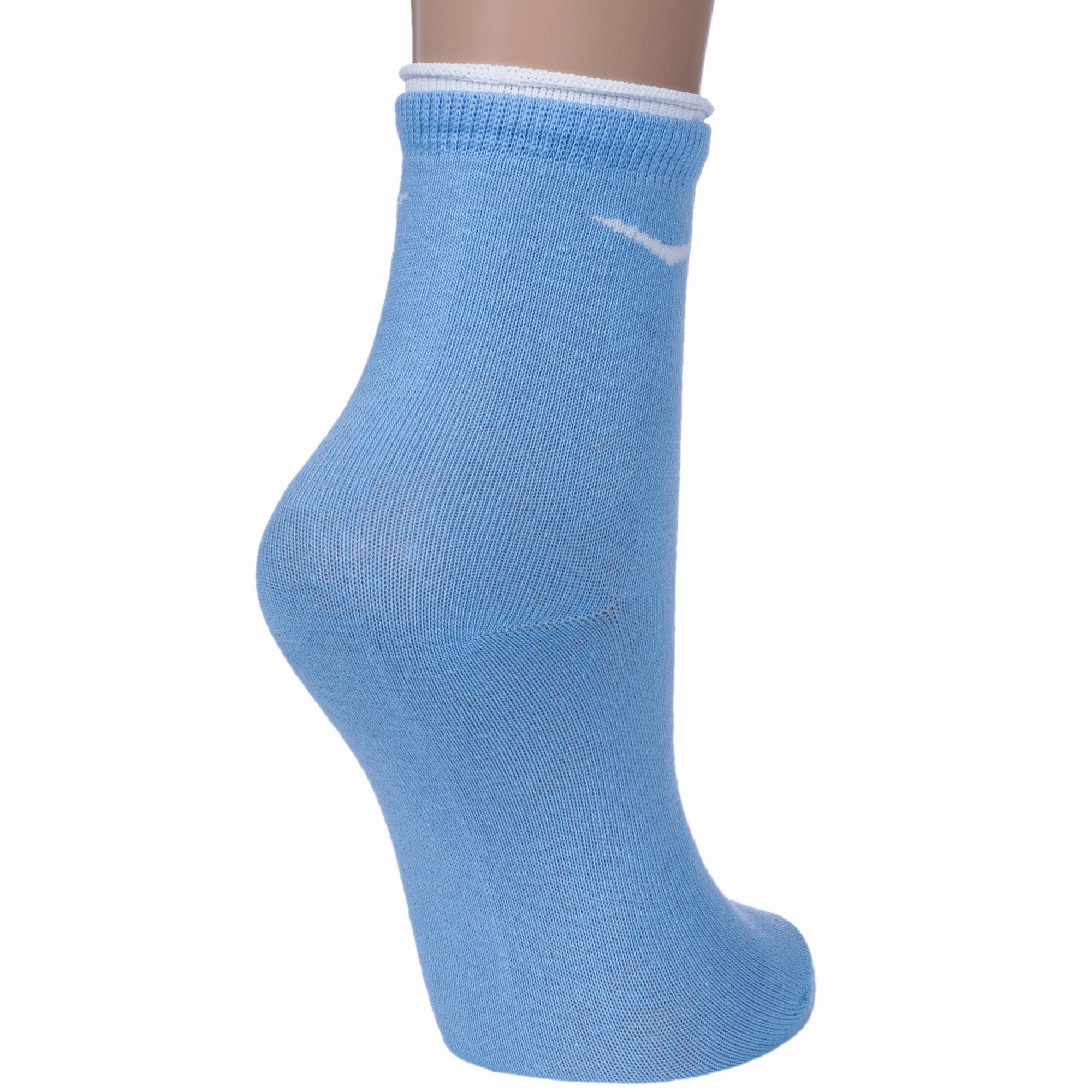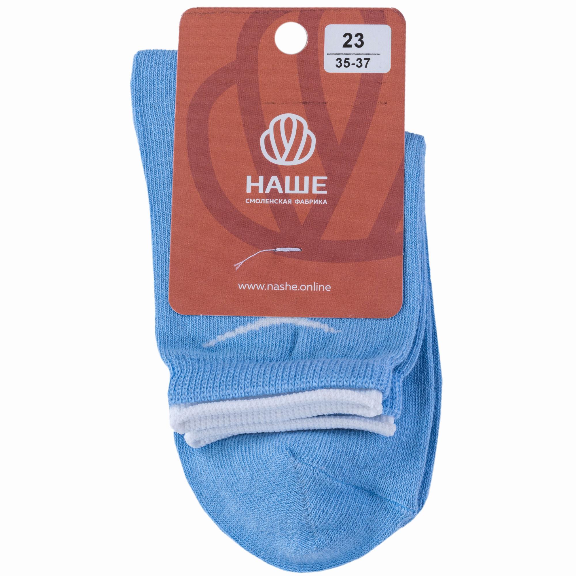 Круглогодичные укороченные женские носки, цвет голубой, спортивные, шов обычный (не бесшовные), принт (рисунок): небольшой рисунок, спортивные, с узором, однотонный, состав: 80% хлопок, 18% полиэстер, 2% эластан, арт. 4С63. Производитель «Смоленская чулочная фабрика, Россия» под брендом «Наше смоленской чулочной фабрики».