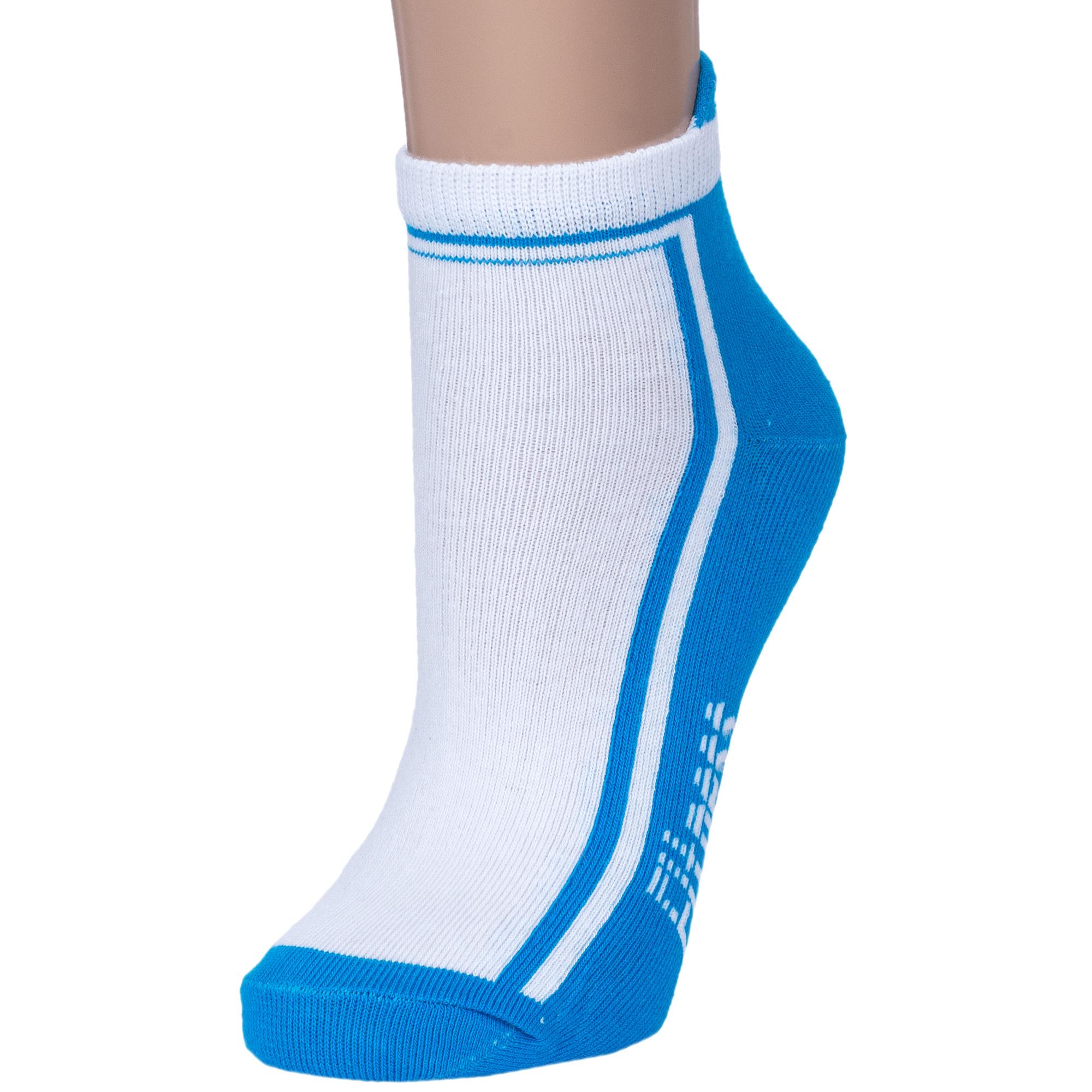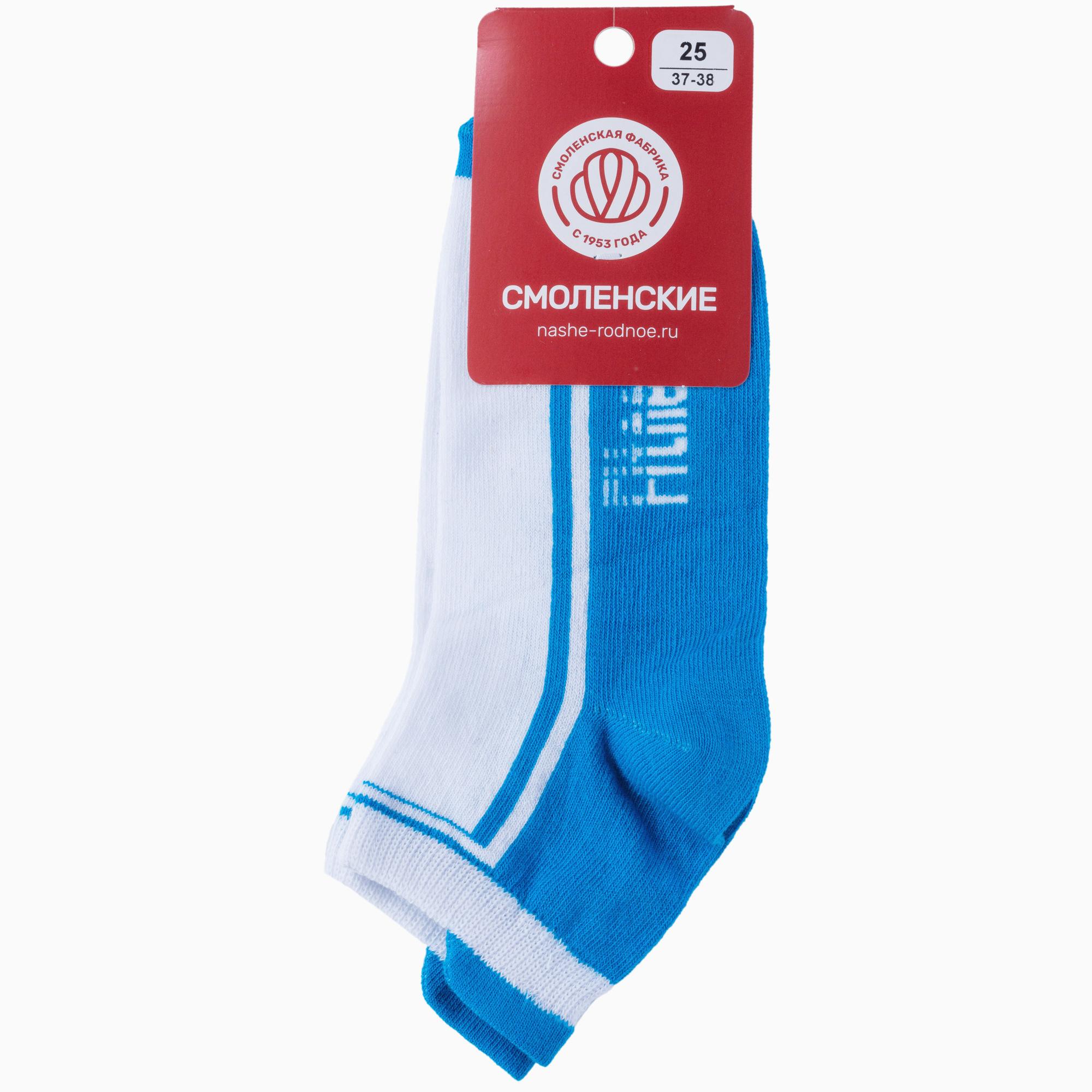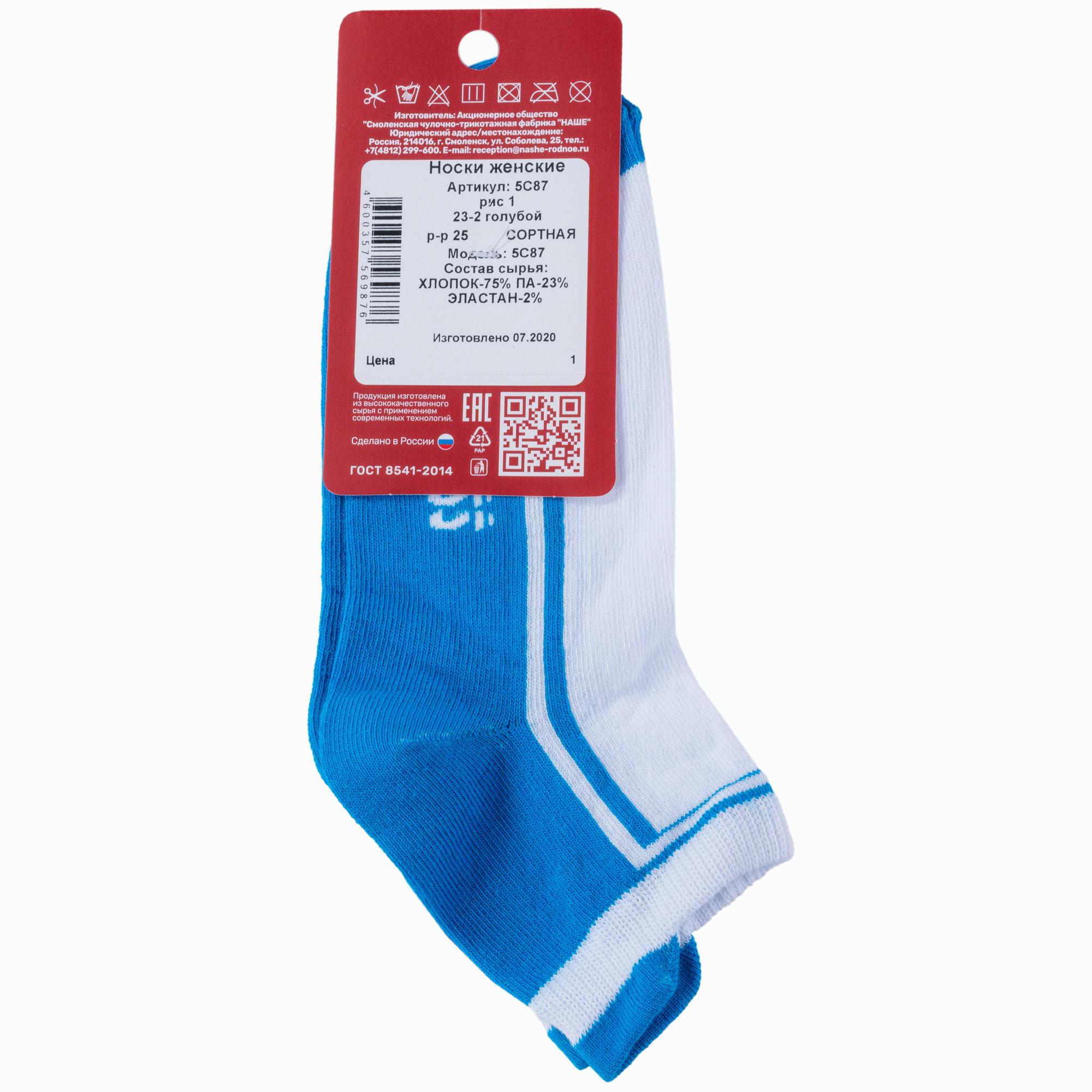 Круглогодичные короткие женские носки, цвет голубой-бирюзовый, спортивные, шов обычный (не бесшовные), принт (рисунок): спортивные, с узором, состав: 75% хлопок, 23% полиамид, 2% эластан, арт. 5С87. Производитель «Смоленская чулочная фабрика, Россия» под брендом «Наше смоленской чулочной фабрики».
