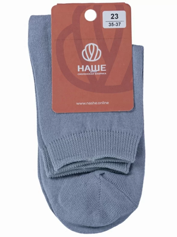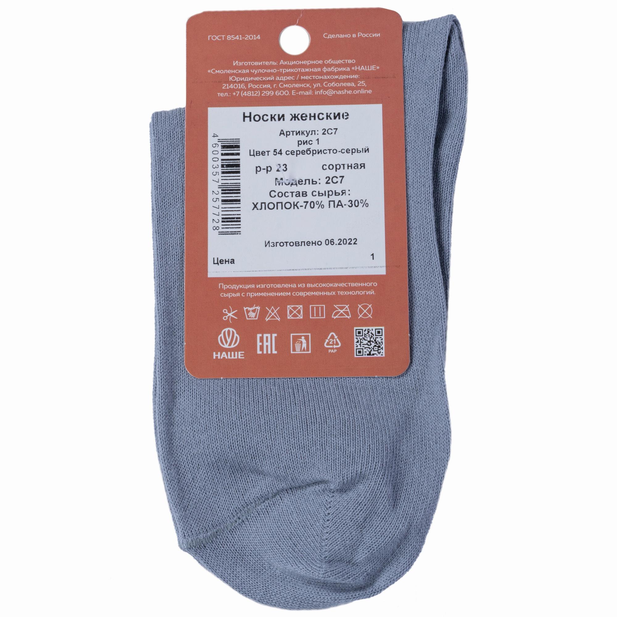Круглогодичные укороченные женские носки, цвет светло-серый, классические, шов обычный (не бесшовные), принт (рисунок): без рисунков/узоров, однотонный, состав: 70% хлопок, 30% полиамид, арт. 2С7. Производитель «Смоленская чулочная фабрика, Россия» под брендом «Наше смоленской чулочной фабрики».