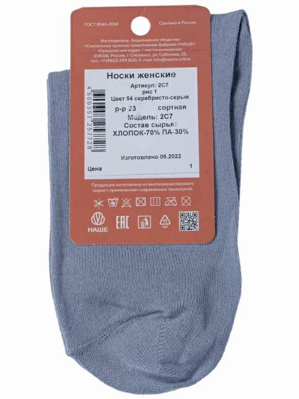 Женские носки "НАШЕ" Смоленской чулочной фабрики, 2С7, рис. 1, СЕРЕБРИСТО-СЕРЫЕ №54