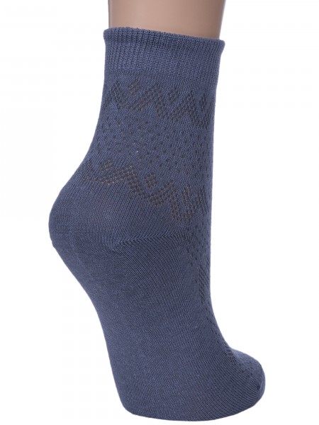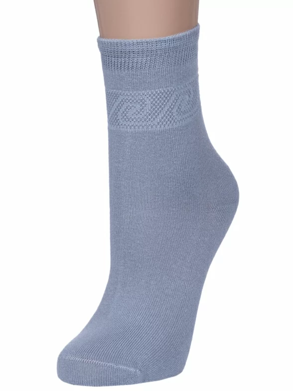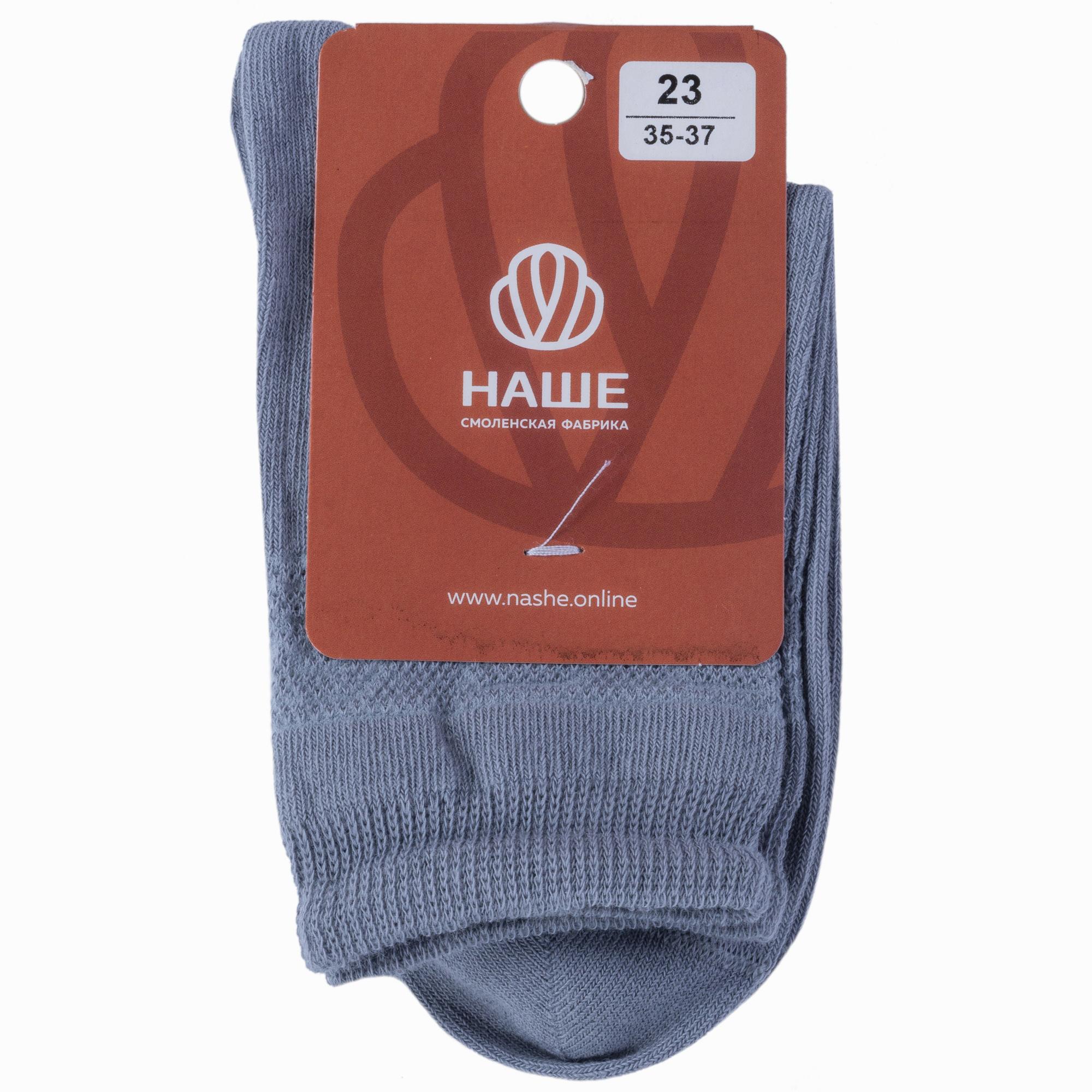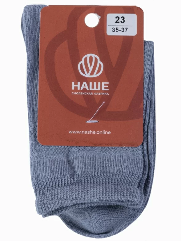 Круглогодичные укороченные женские носки, цвет светло-серый, классические, в сеточку, шов обычный (не бесшовные), принт (рисунок): однотонный, орнамент, с узором, состав: 75% хлопок, 23% полиамид, 2% эластан, арт. 422С1. Производитель «Смоленская чулочная фабрика, Россия» под брендом «Наше смоленской чулочной фабрики».