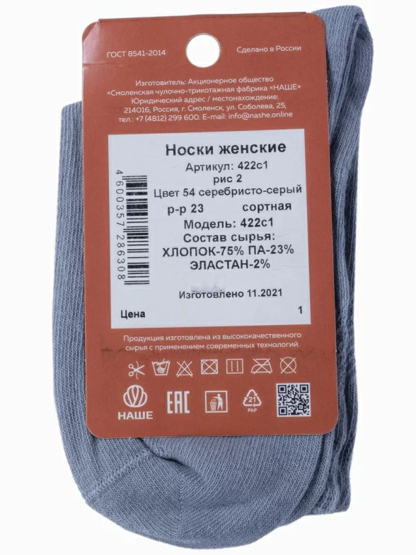 Женские носки "НАШЕ" Смоленской чулочной фабрики, 422С1, рис. 2, СЕРЕБРИСТО-СЕРЫЕ №54